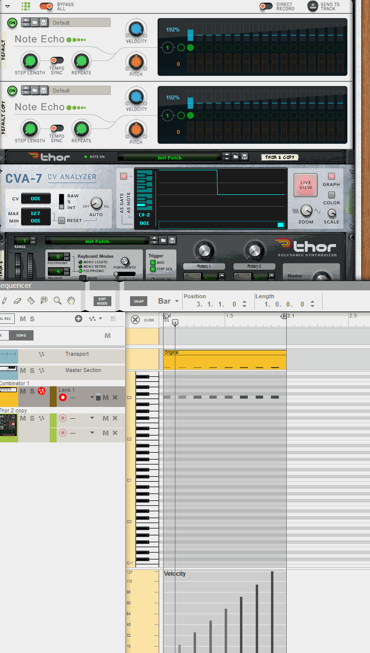 Да, мысль правильная, правда я пока не понял, как это в реальном времени фунциклирует и есть ли задержки между нотой - реакцией и правкой ручки велосити.Т.е., условно говоря, сделать настраиваемый порог инверсии?