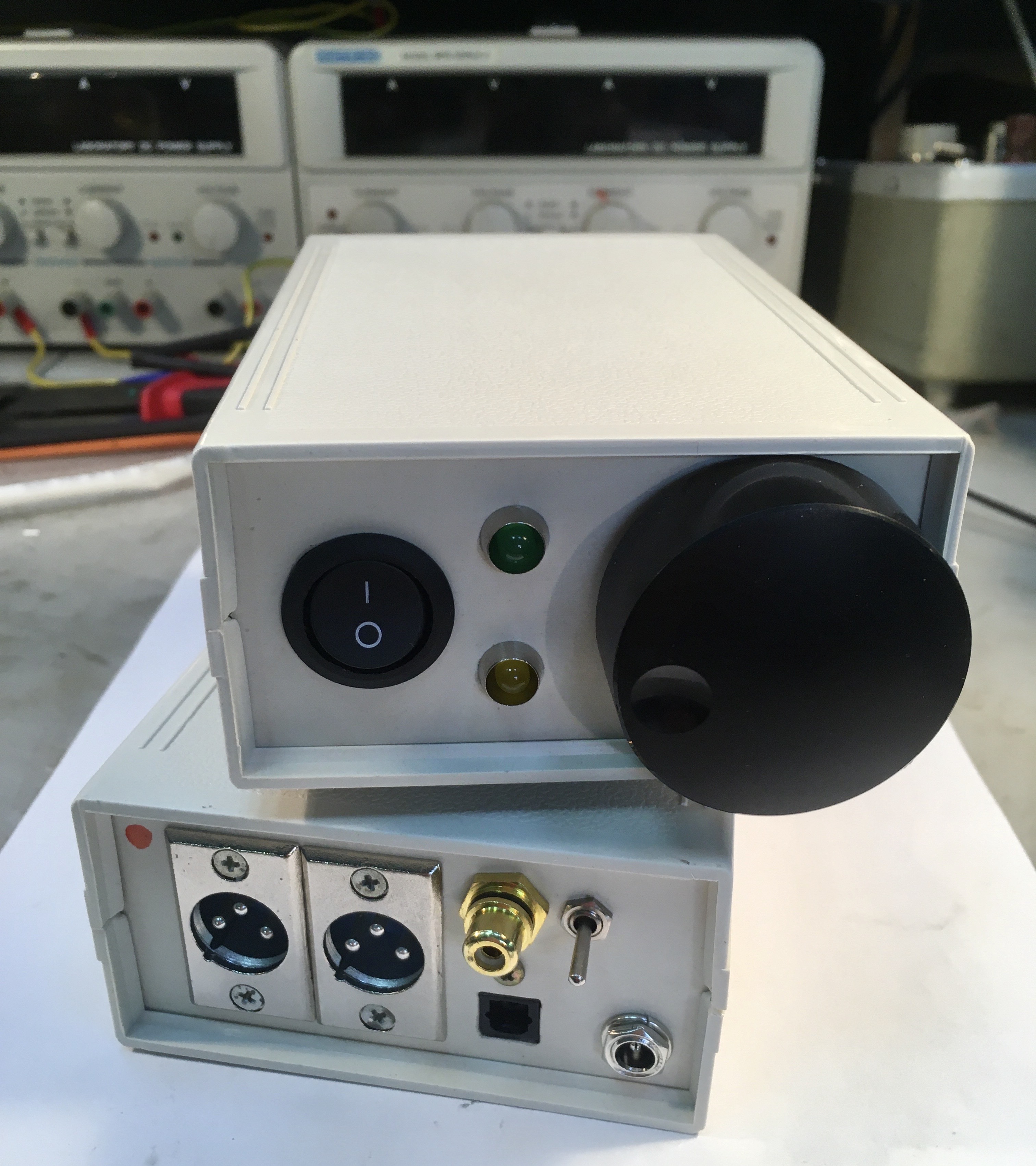 Там в коробке только ЦАП, с парой цифровых входов и одним XLR выходом. Регулятор громкости - "цифровой". Разъемы и переключатели - обычные, с радиорынка. Это всего лишь первый прототип. В таком виде это нельзя продавать. Через пару месяцев будет нормальное предложение. И еще важный момент: по результатам прослушивания наверняка что-нибудь подрулим в звуке. Тогда будет хороший, завершенный вариант устройства.