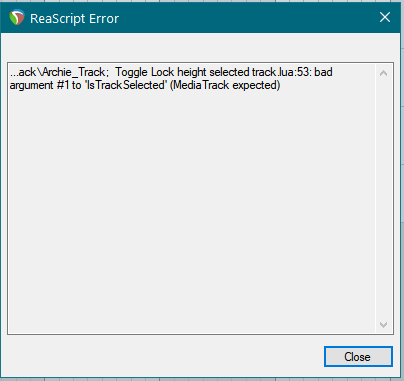 Ай-я-я-й, а обманывать нехорошо.:) В скрипте, который в предыдущем сообщении, такой ошибки не может быть, т.к. там нету такой функции "IsTrackSelected" эта ошибка может быть только в одном скрипте, в том который в реапаке.