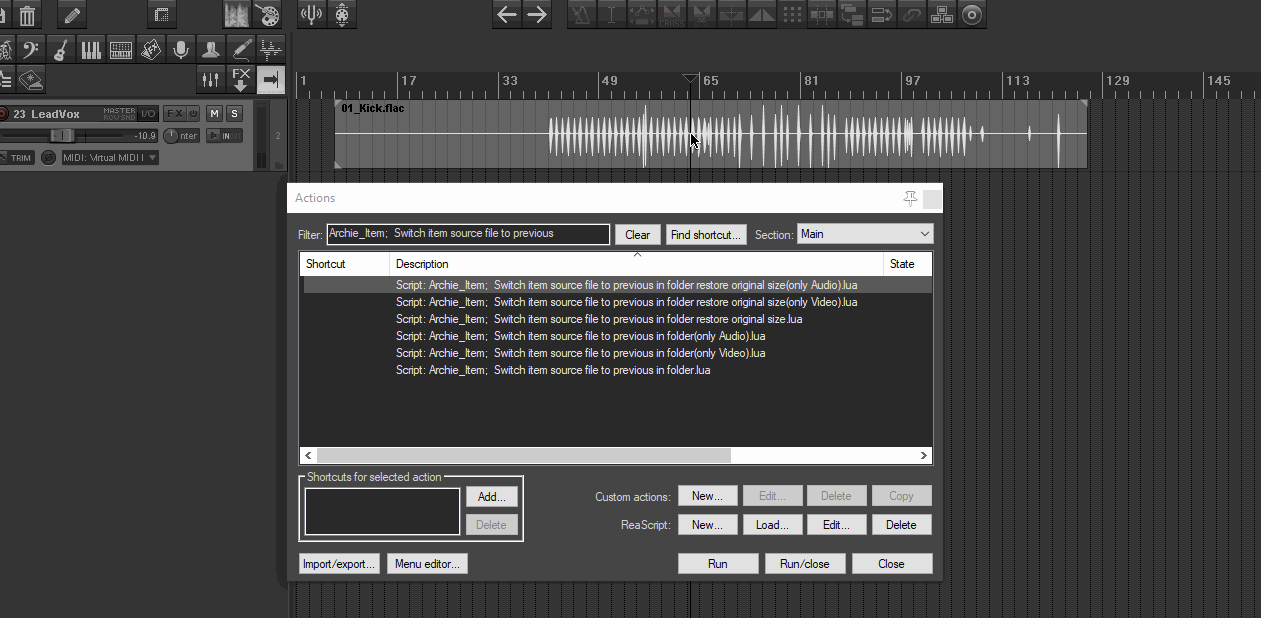 начинаем (Script: Archie_Item; Switch item source file to previous in folder restore original size(only Audio).lua) перелистывать искать подходящий звук..... семпла.