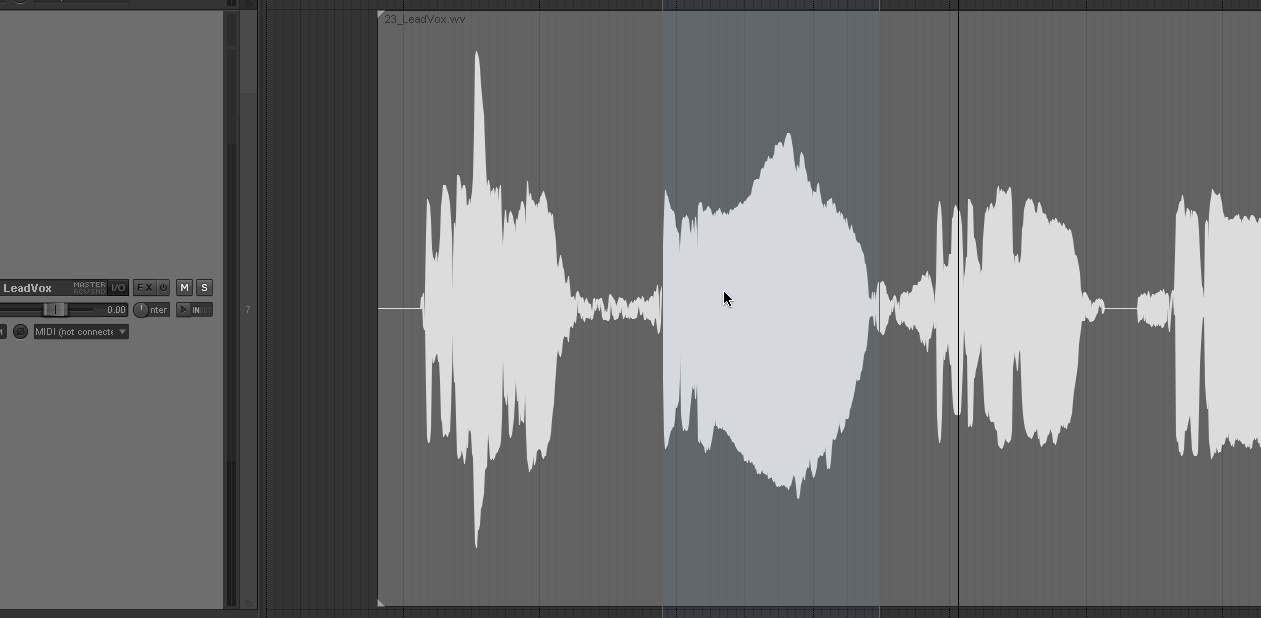 Ты хочешь что бы айтемы резались по выбору времени на выделенном треке и которые остались в выборе времени к ним применялась громкость. Да?