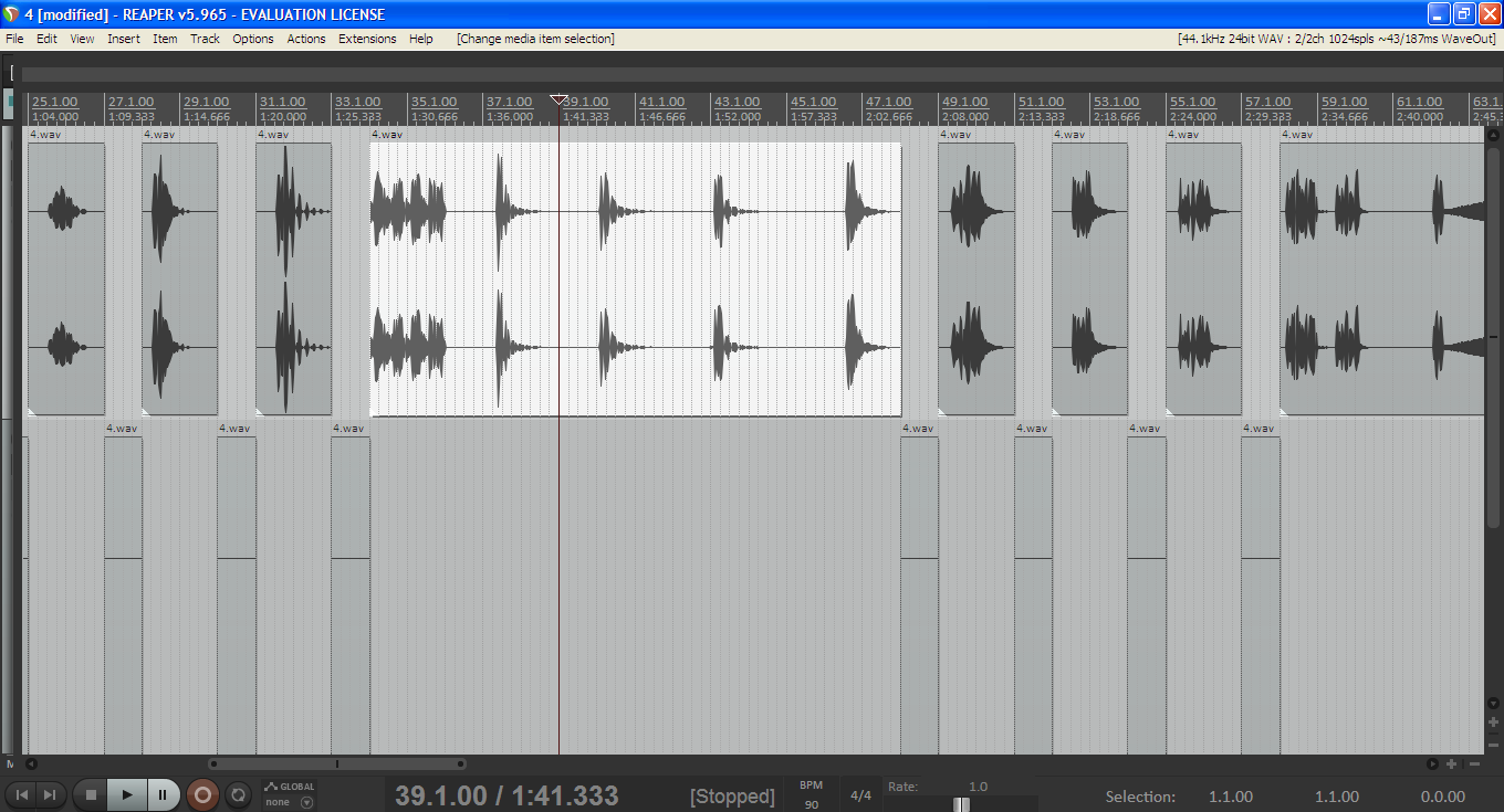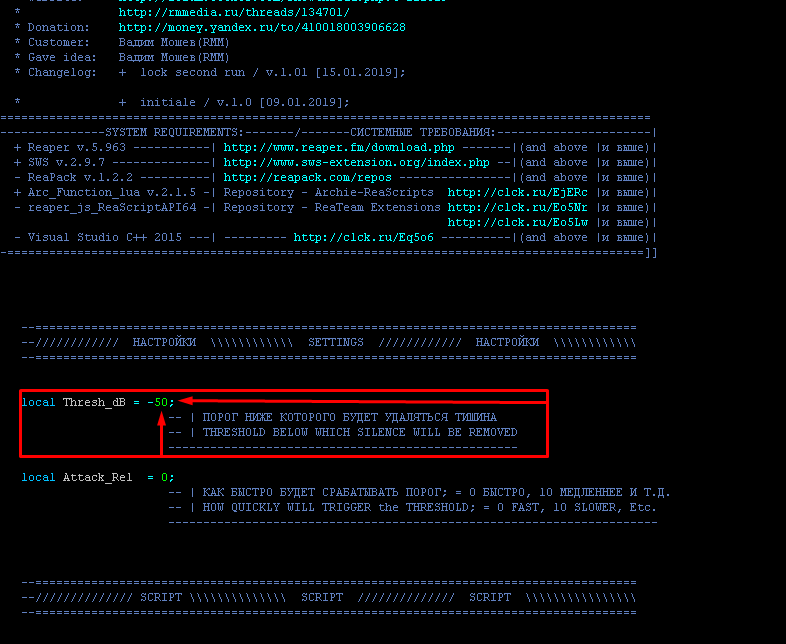 Достиг, просто ты до конца не понял работу скриптаКак ты считаешь, можно ли добиться путём регулировки параметра thresh_dB идеального результата? Я имею в виду, чтобы и дилей не обрезался, и чтобы айтемы разбивались по тишине. Я вот сейчас до дробного значения в -46.295 децибел, но идеала так и не достиг