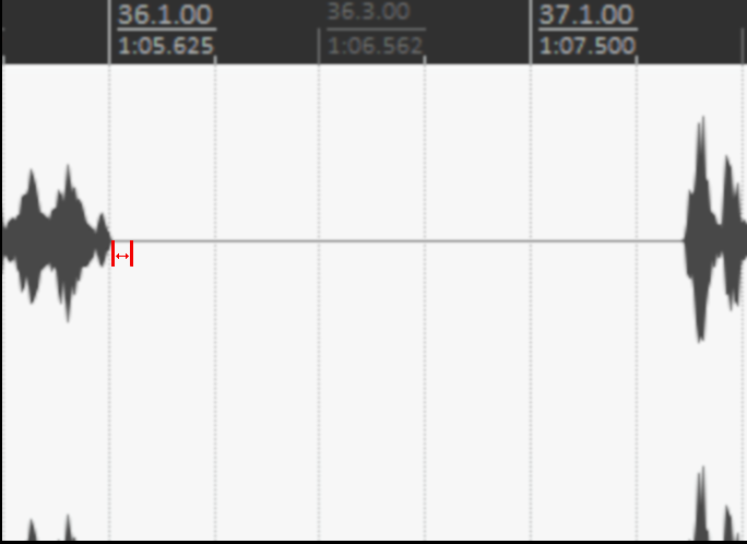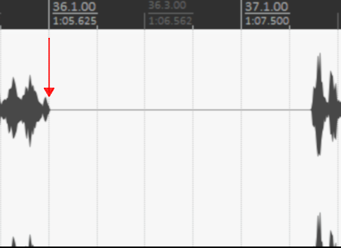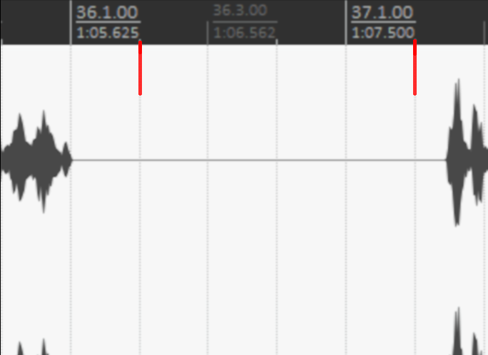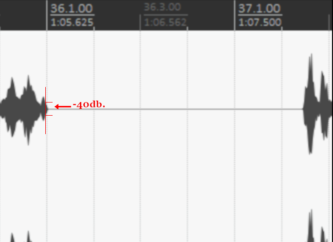 У меня либо хвост с дилеем обрезается (синий прямоугольник, всё, что в нём - это дилей), либо файлы по тишине не разбиваются (в красном прямоугольнике абсолютная тишина, я ничего не слышу, и индикаторы ничего не показывают, даже при усилении +12 dB).