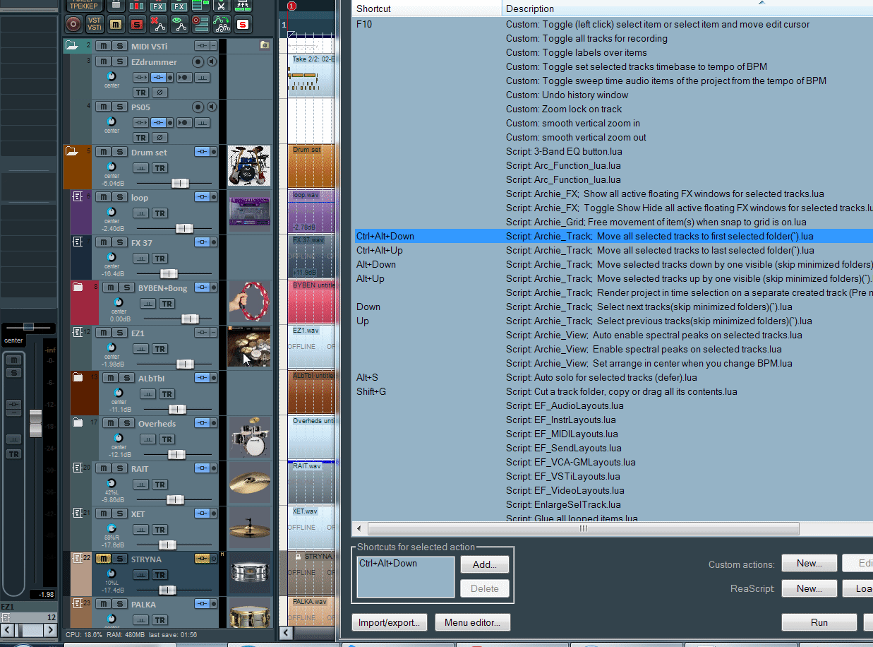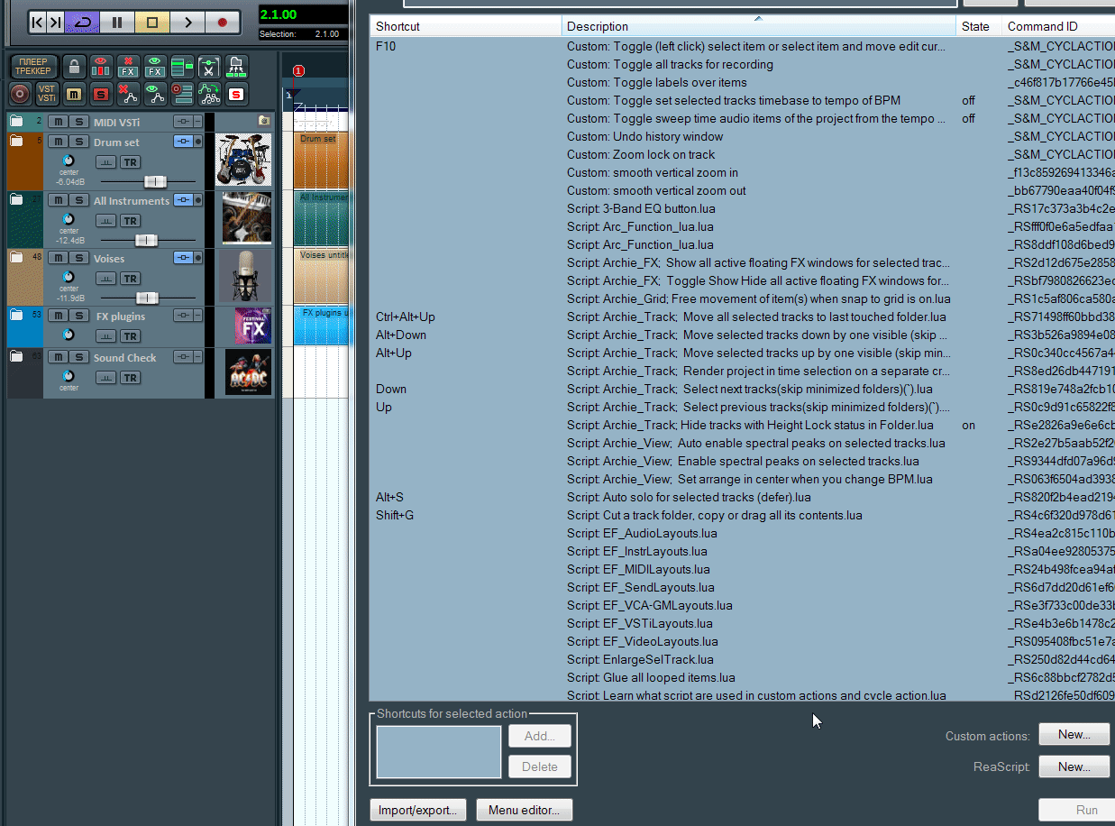 Потому и понадобились скрипты и хоткеи к ним. А результат - в Reaper я работаю, в монтаже проекта, в 5 раз быстрее чем в Cubase! А вот синонима между первым и верхним невижу - трудно...