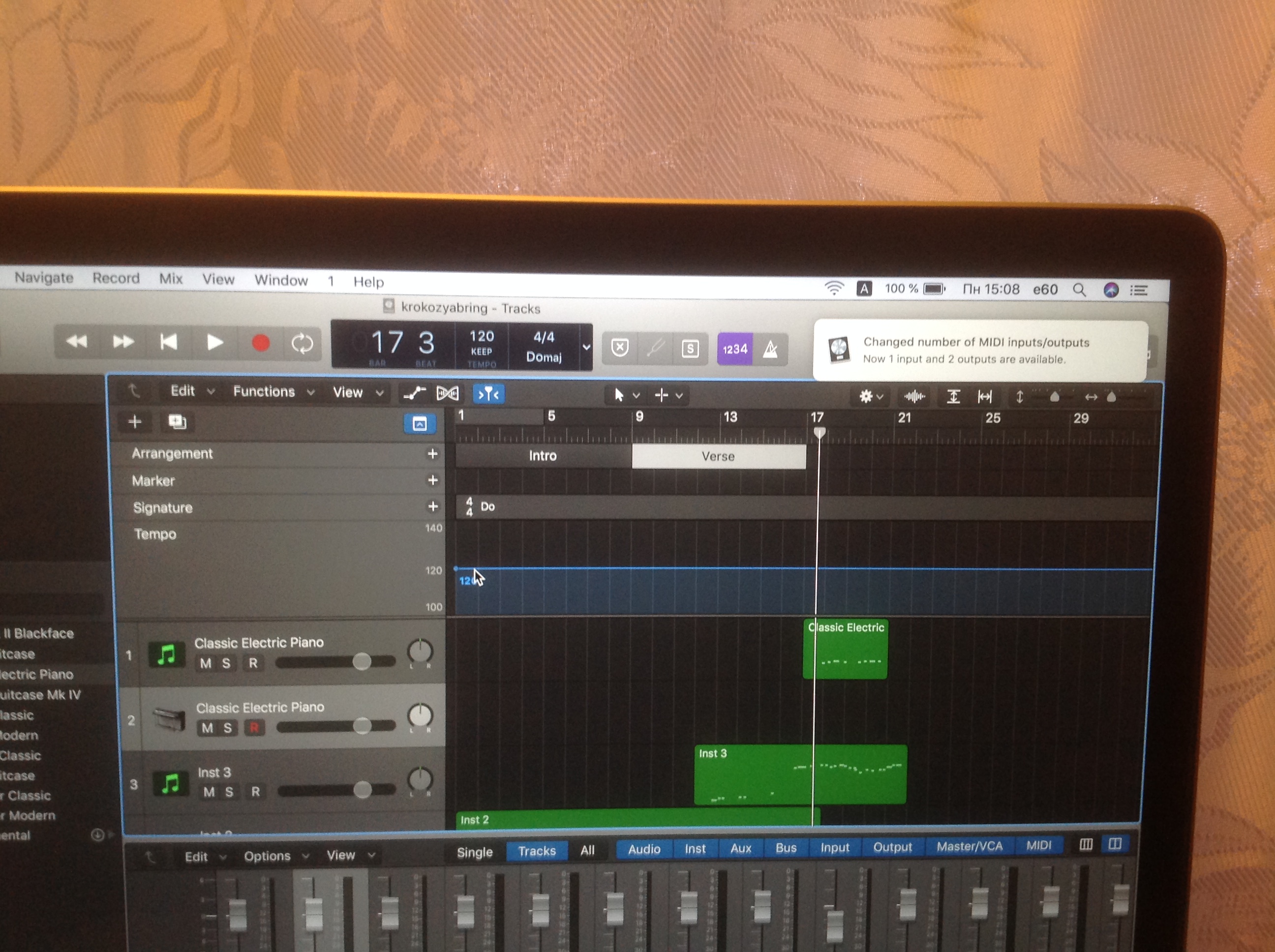Всем доброго времени суток! Пытаюсь подключить к Лоджику цифровое фортепиано через переходник MIDI-USB. Программа подключение видит: возникает сообщение в правом углу, что появились midi in, а вот звука нет, на клавиатуру не реагирует. Посоветуйте, пожалуйста, как решить вопрос.