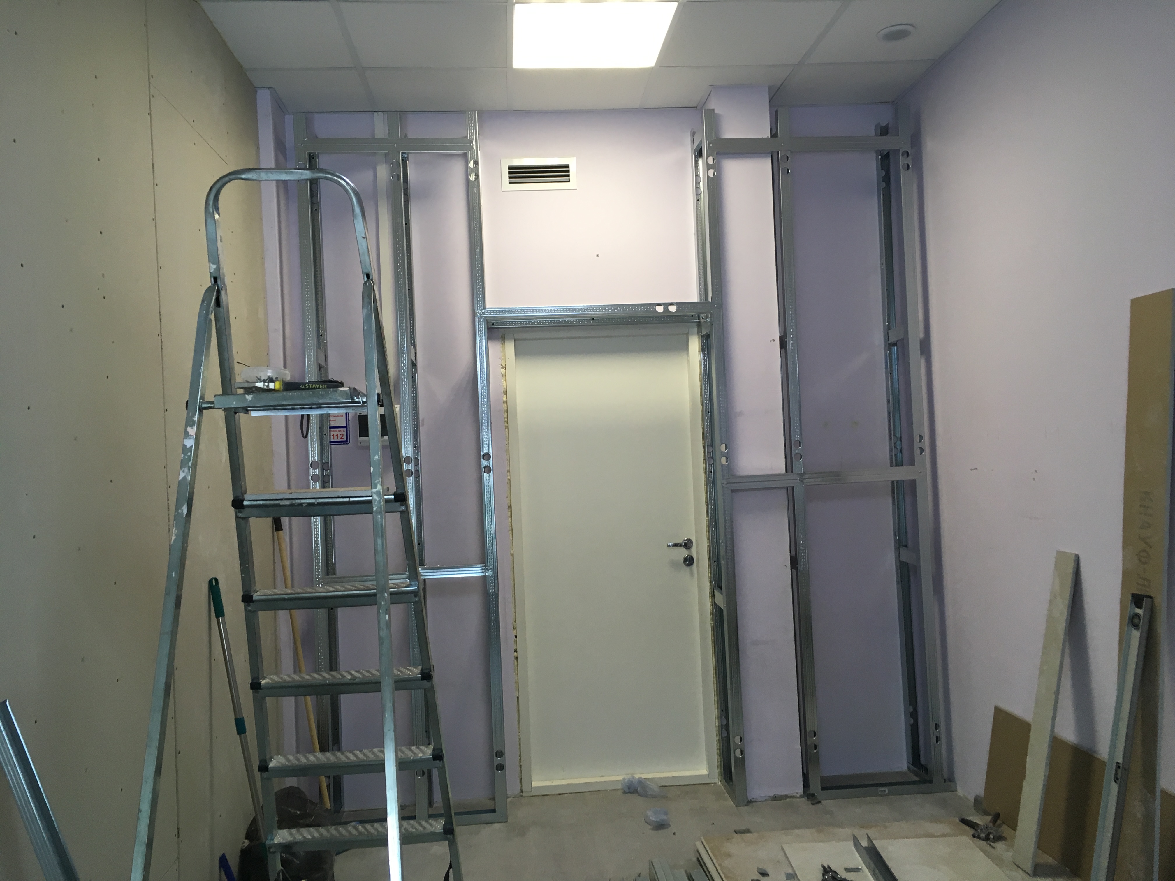 Решил пока обшить стену со стороны где парихмахерская и вход. Поставить вторую дверь и произвести замеры. А там уже видно будет, нужно обшивать где окно и стена соседствующая с нашей или нет.