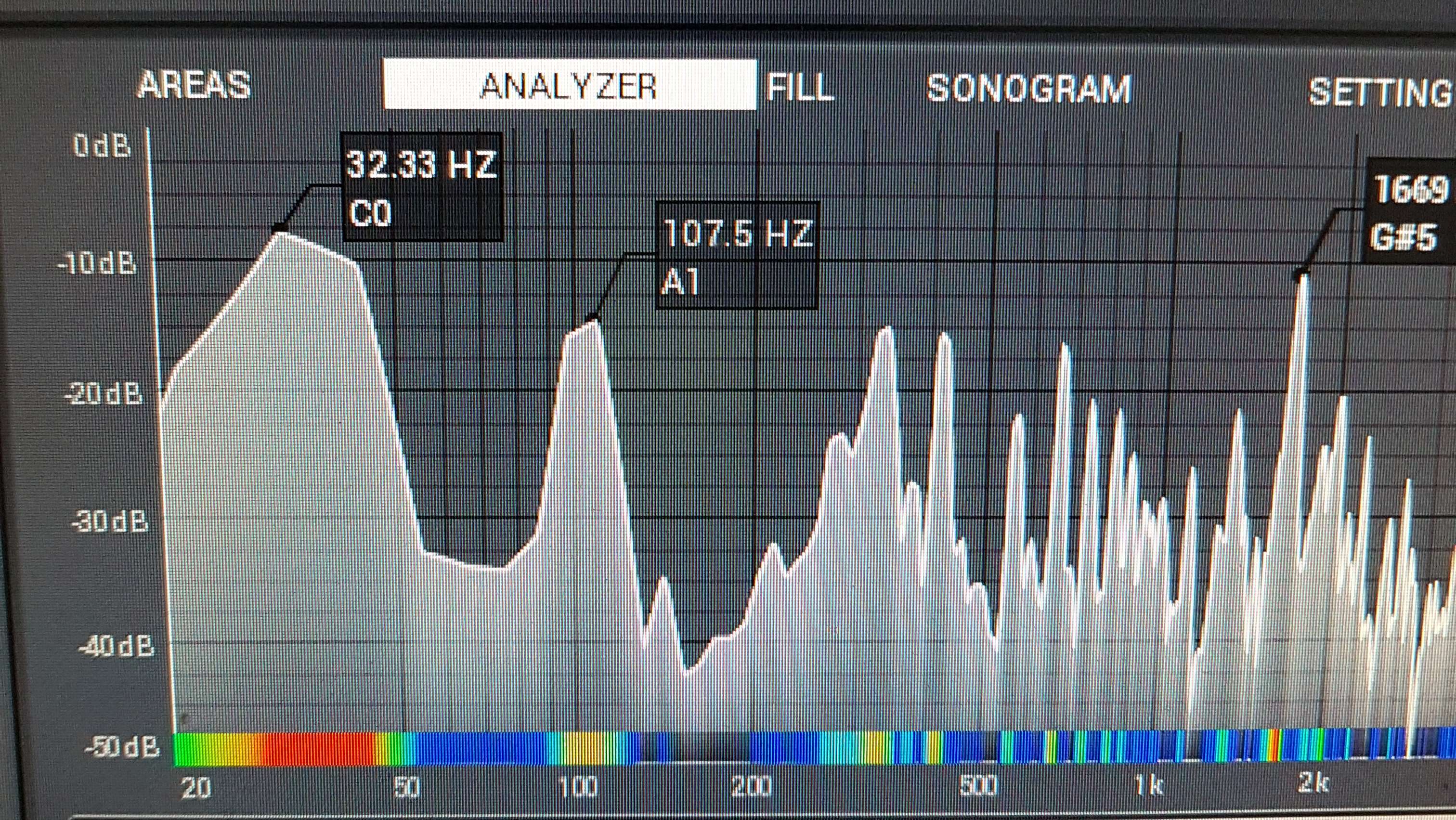 Посмотрел по анализатору. В этом треке эта основная нота С0 но с ней же звучит и А1.