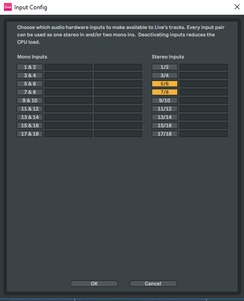 Заскриньте настройки "Input Config" самого аблетона...и настройки аудиотрека на который пытаетесь писать.