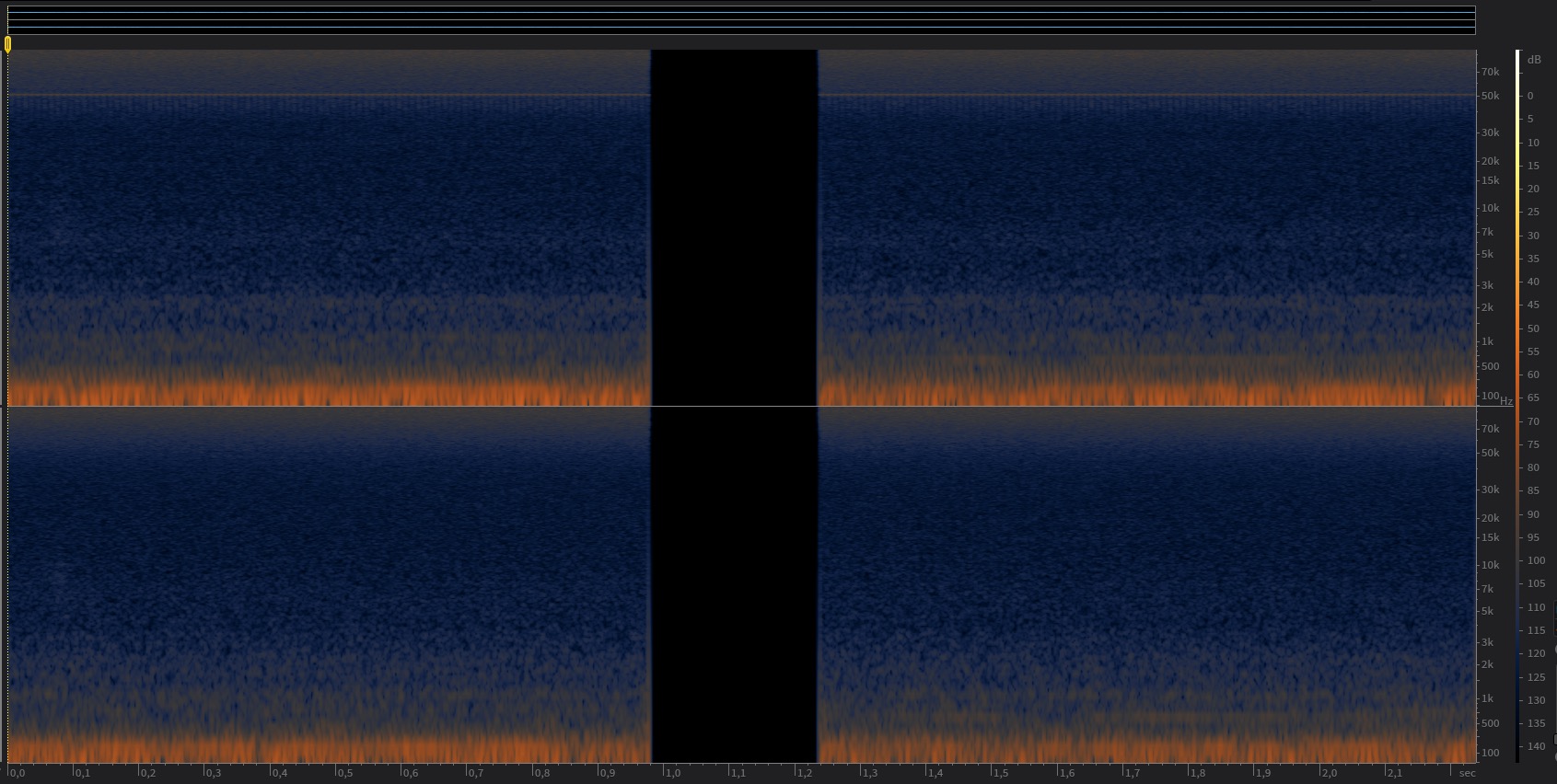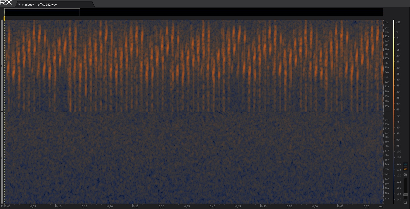 PS. выгнал 192khz файл из сессии, открыл в изотопе - теперь видно, что дополнительная "жизнь" появляется на вч (приаттачил файлы, сначала на картинке - с подключением к 220 вольт, потом - на аккумуляторе).