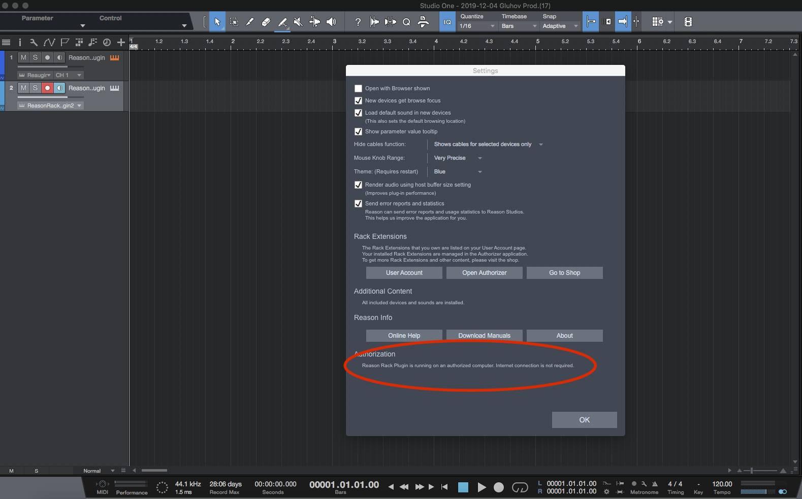 Reason Rack в формате AU тупит