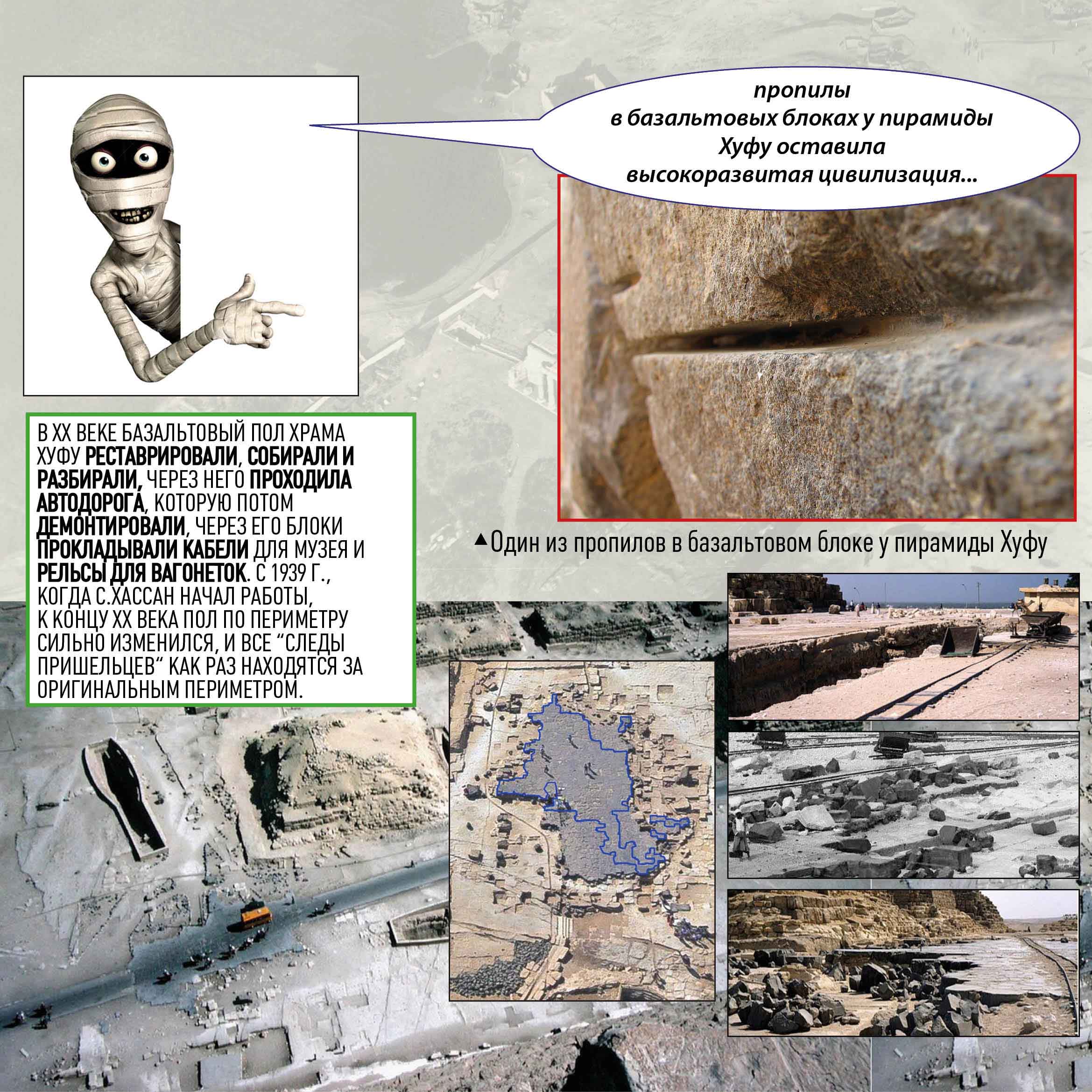 В самом заголовке статьи - обман для читателя. Смотрим пункт 1. Вранье. Читаем дальше: подпись под фото: "Храм Сахура. Отверстие с равномерно повторяющейся резьбой." Очередная ложь, не тот храм и нет резьбы. 8 - незнание матчасти. В целом, какие-то фантазии и домыслы.Как с их точки зрения объясняются факты ( или это понты/подставы ЛАИшников? )