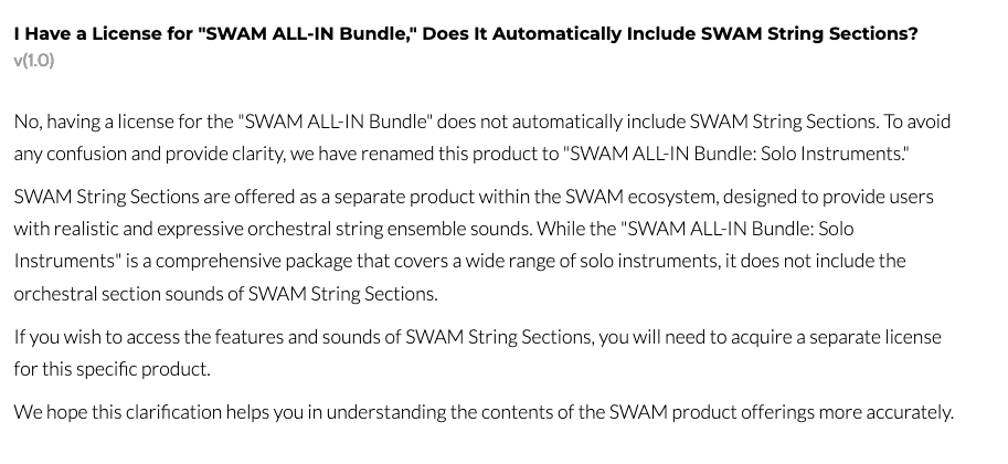 К слову сказать, никаких скидок владельцам предыдущих любых инструментов SWAM не предусмотрено, лояльность по итальянски) Разве что на bestservice эти струнные секции стоят на 50$ дешевле. А на 450$ они ну никак не звучат