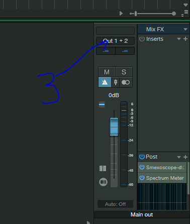 Не вводите общество в заблуждение!! В S1 Всё делается элементарно. Заходим в Options - Audio Setup - Song Setup - Add (Stereo) =стрелка 1=(именно Add (Stereo) стрелочку не туда нарисовал, Sorry) - назначаем out 3-4, =стрелка 2= подписываем как вам хочется, далее применить/ok, Далее =стрелка 3= клик левой кнопкой мыши в выпадающем меню выбираем либо 1-2 или 3-4. Элементарно, Ватсон))