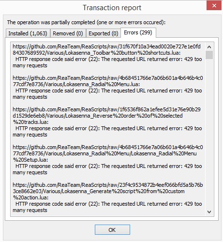 Поставил чистый рипер/реапак/sws и при синхронизации тоже получил кучу ошибок 429 "слишком много запросов". Так что даже чистый реапак выдает кучу ошибок.