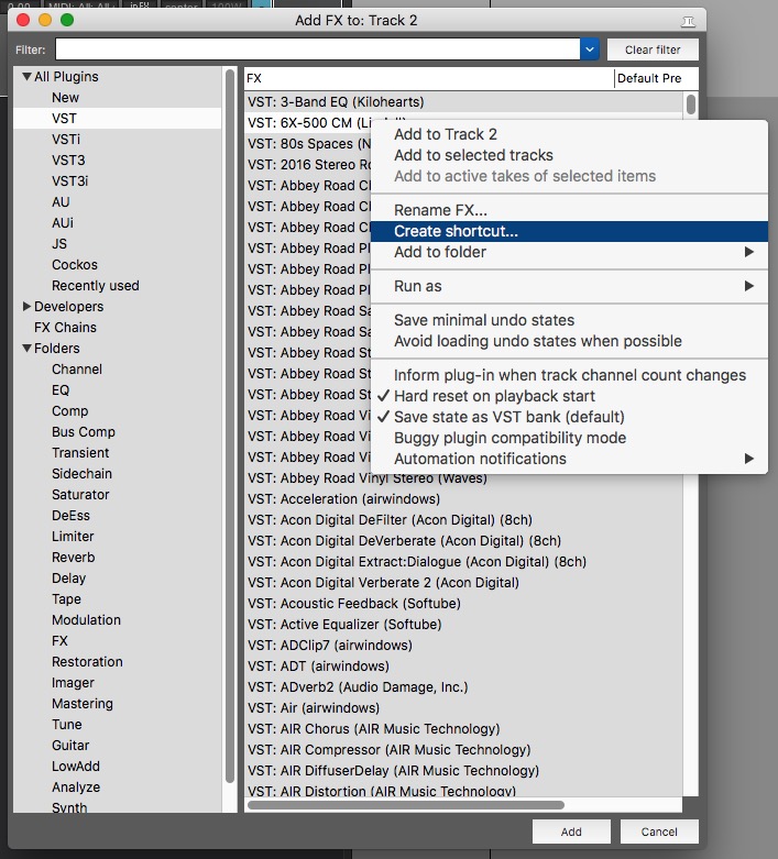 Подскажите как сделать, чтобы vst которые на тулбаре (предназначенные для треков) могли с нажатием на хоткей+кнопка которая на тулбаре, vst загружалось на выделенный айтем(ы) ?