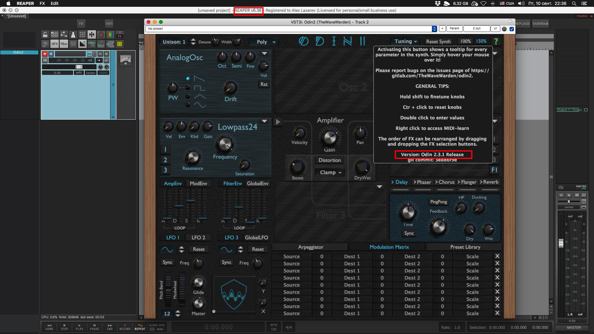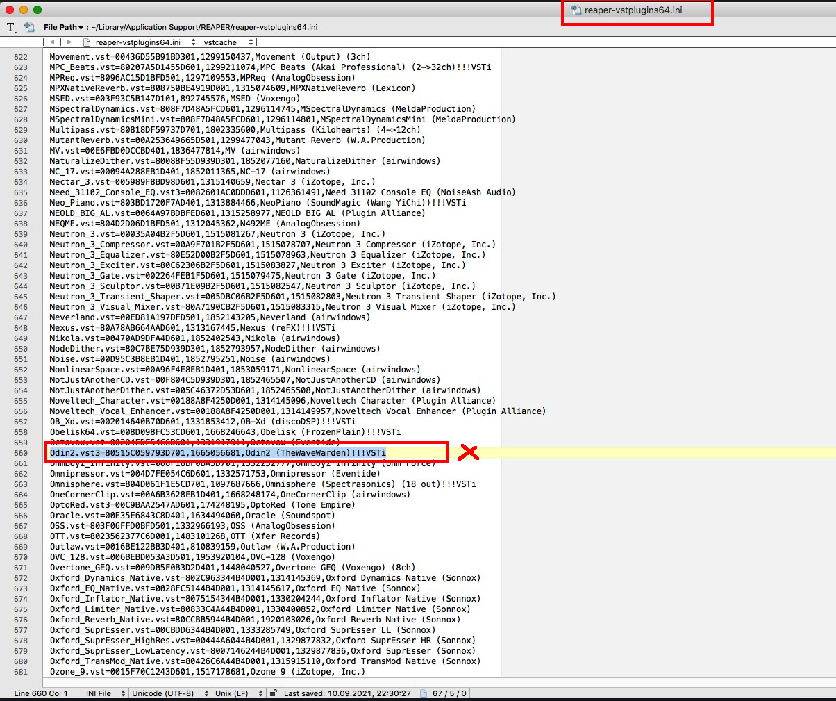 Доброго времени суток. Уважаемые друзья, нуждаюсь в ваших подсказках снова. Сегодня обновил vst3 синт Odin II до новейшей на сегодняшний день версии 2.3.1. с официального сайта и мой Рипер перестал его отображать в инструментах. В настройках проверил, что путь к папке vst3 указан. На сайте синта предлагаются варианты решения проблемы- все их попробовал, но проблема осталась. Вернул в папку vst3 старую версию этого синта - Рипер его увидел. На всякий случай обновил и Рипер и sws и после этого попробовал снова установить новую версию ситна - Рипер его не видит. У меня только один вывод напрашивается, что новая версия синта пока не поддерживается по какой-то причине Рипером. Может кто-нибудь захочет установить последнюю версию этого синта в свой Рипер, чтобы подтвердить или опровергнуть мою гипотезу. Заранее благодарю!
