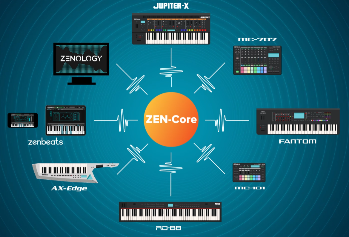 ZEN-Core tones created on one instrument can be shared with other users or transferred into completely different (but compatible) Roland hardware. Take a sound made on a FANTOM and play it in the spotlight on a JUPITER-X. Or take a luscious JUPITER-X synth patch and play it on the RD-88 Stage Piano, simplifying your setup and expanding your options.