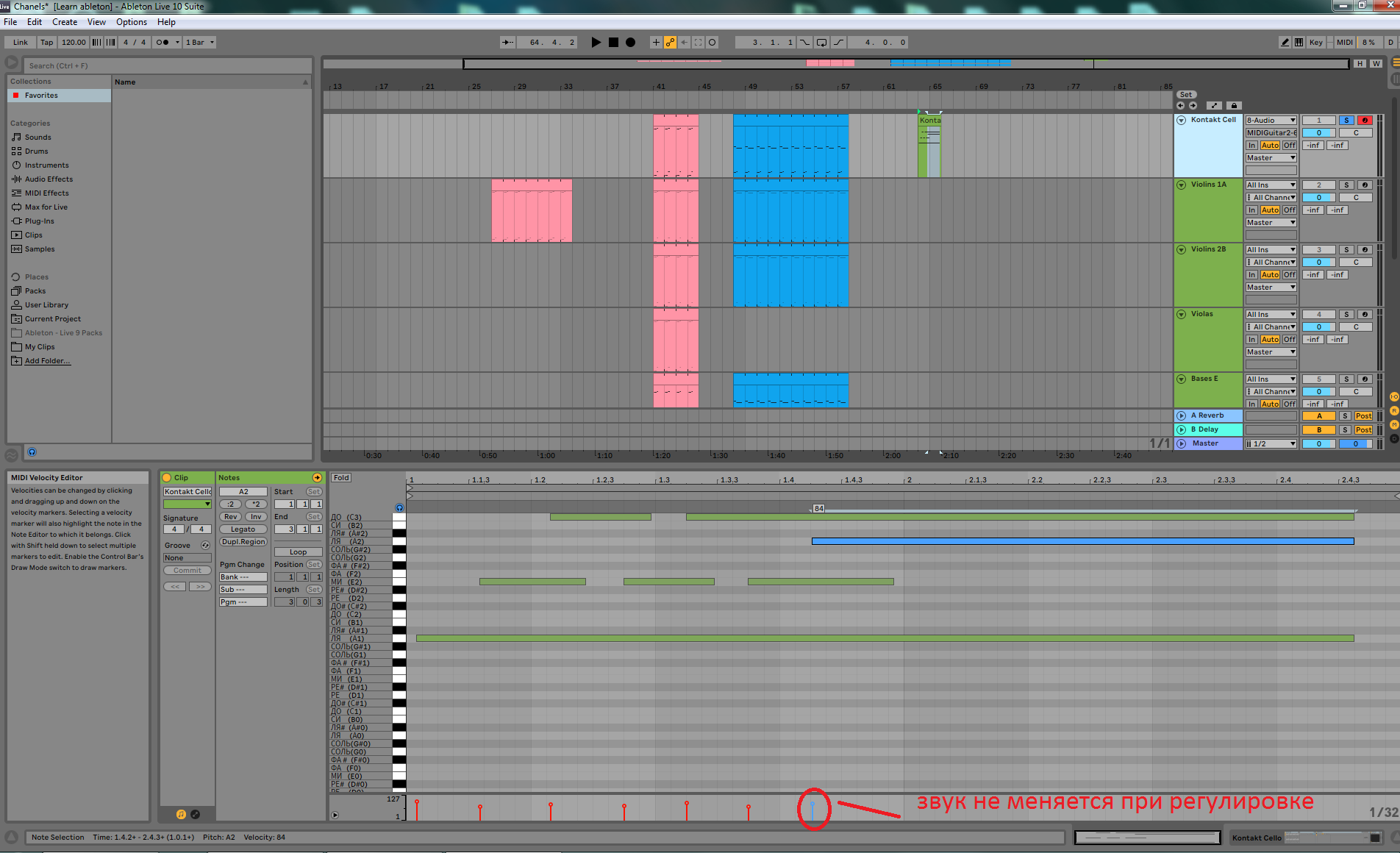 Библиотека Spitfire Symphonic Strings в Ableton не изменяется громкость при определенных артикуляциях
