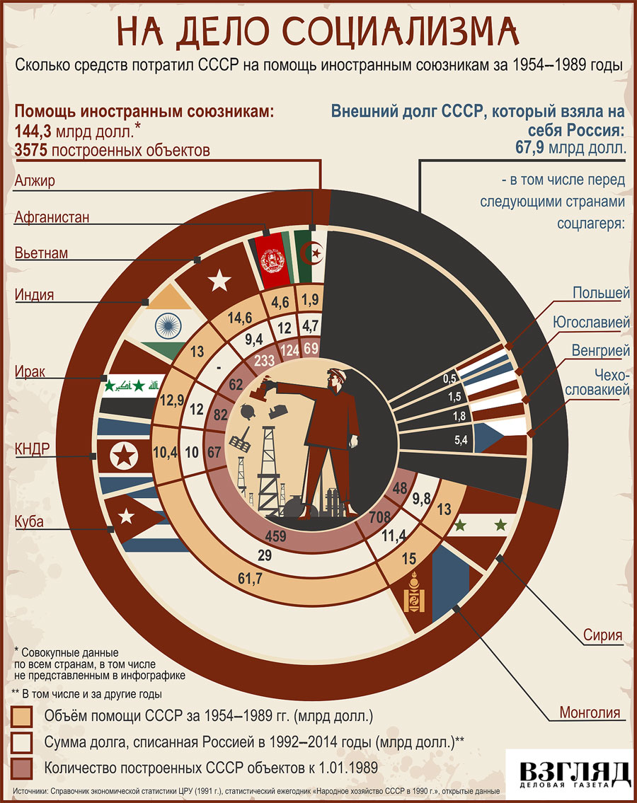 Ой ладно , как будто СССР не вваливал в страны соцблока - миллиарды ) и не поддерживал людоедские режимы по всему миру ...