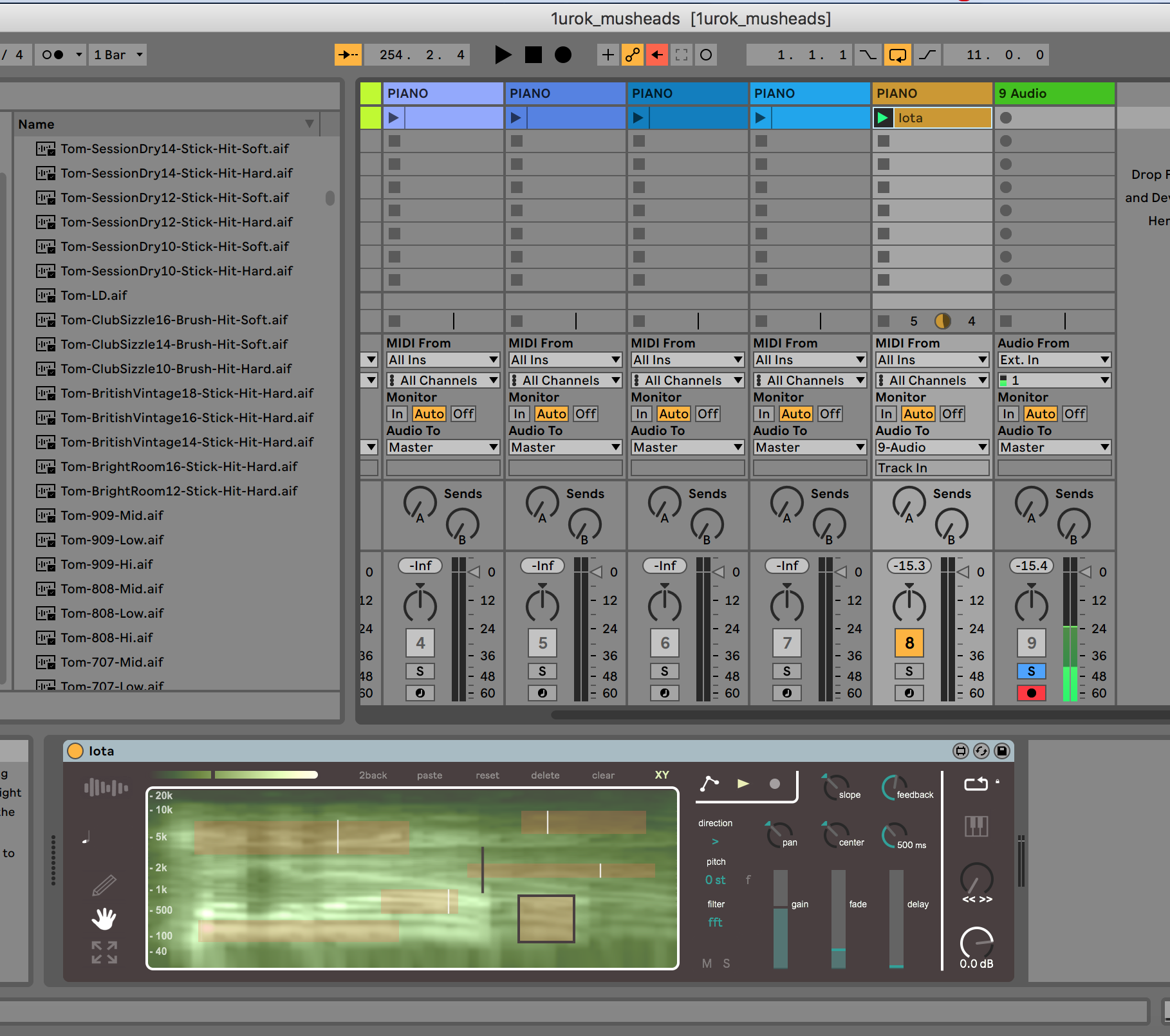 Если записываешь в миди, изменения не отображаются. А в той коммутации, как у меня идёт какой-то непонятный сигнал на аудио при том, что трек с инструментом не играет в это время.