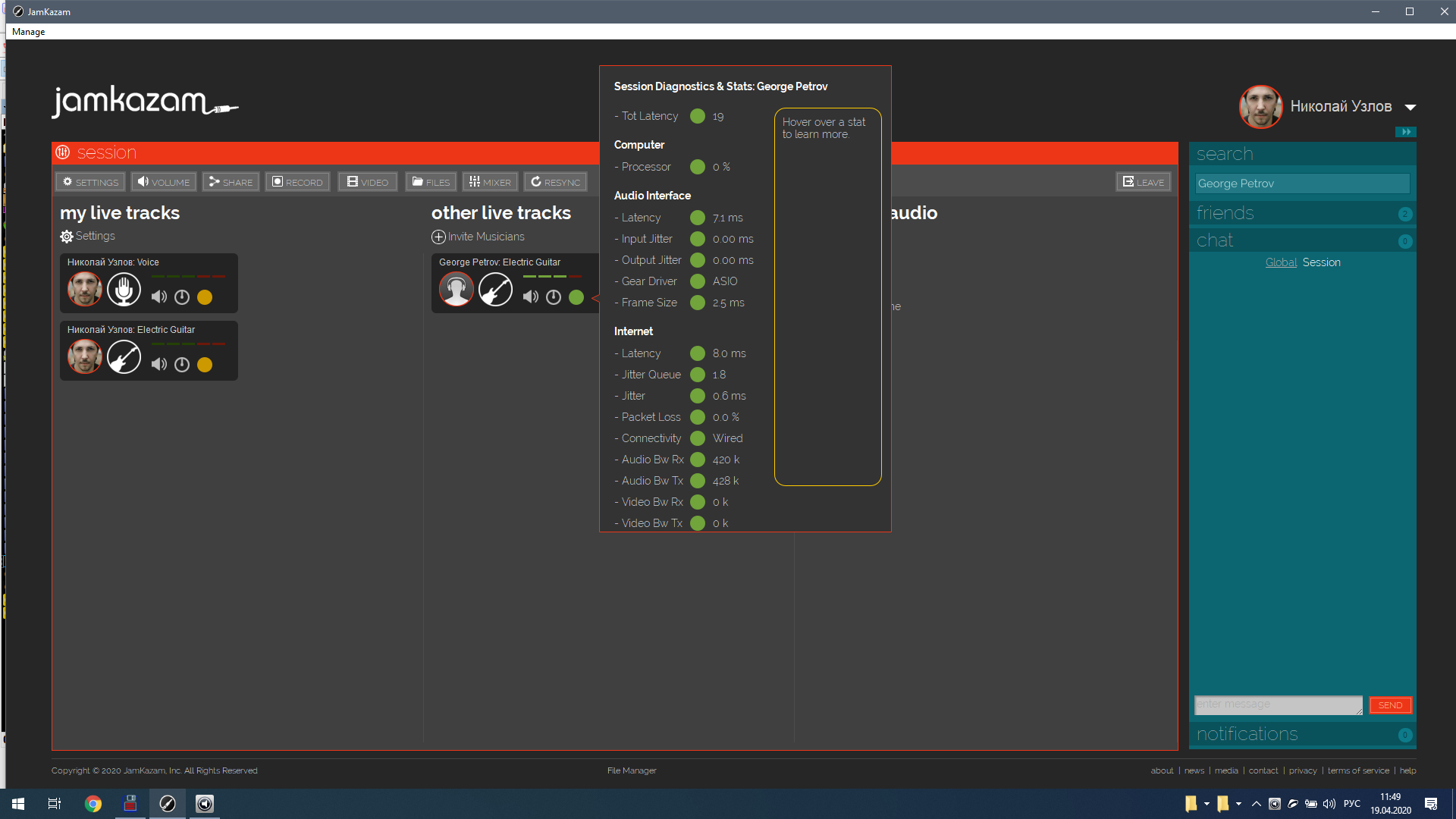 JamKazam (Тамбов-Питер 20 мс общей задержки вместе с ASIO буферами и прочим)