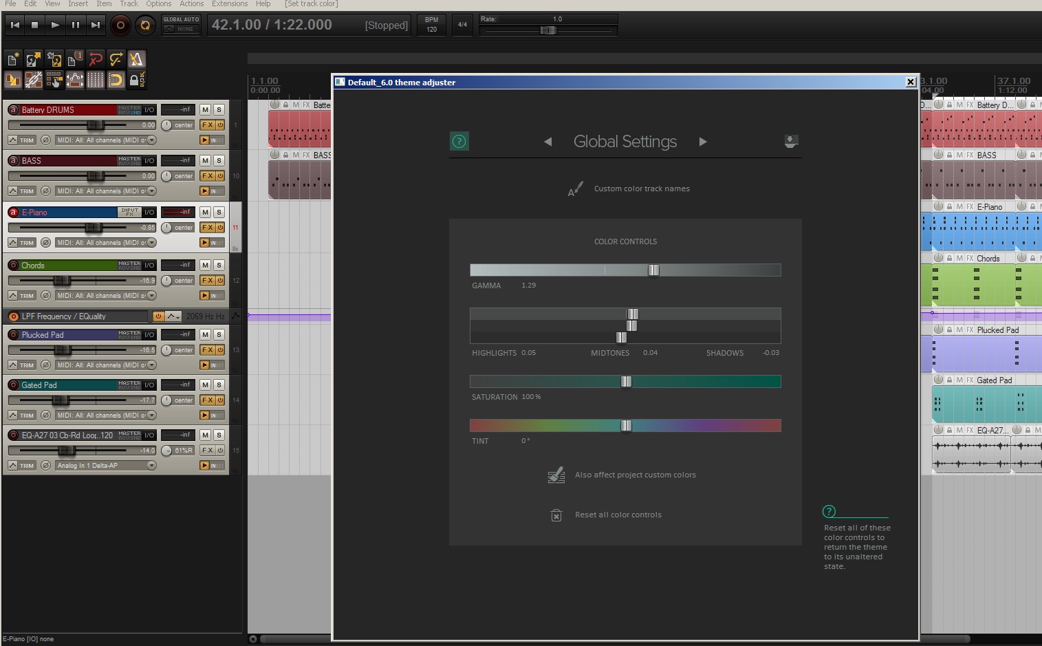 Зашел в Options - Themes - Theme adjuster/Color controls. Чуть подкорректировал, стало ближе к желаемому.