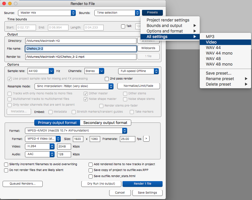 Здравствуйте! 3ий день ищу, поставил ВСЕ репозитории. Как отрендерить выделенные айтемы на дорожке в ту же папку откуда они были закинуты, с эффектами на дорожке и с перезаписью оригиналов ну или с добавлением чего нибудь к имени на конце?