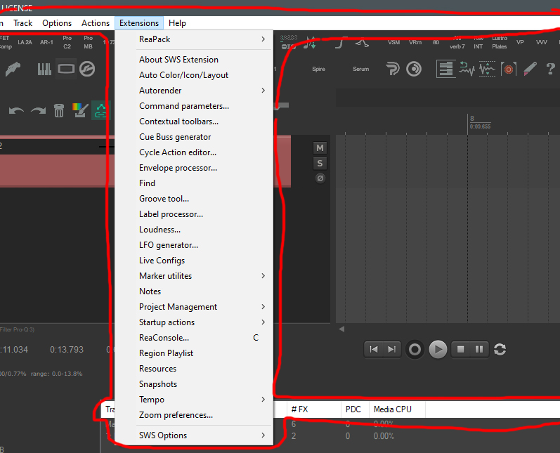 2) Кнопки быстрого добавления плагинов реализованы через SWS: Paste FX Chain to selected tracks slot и собственно номер слота. Вставка плагинов таким путем занимает 3-4 секунды, даже в пустом проекте. Вставка через поиск плагинов моментальная. Опять же связано это, вероятно, с загрузкой сохраненных настроек плагина. Если добавлять без настроек, теряется вся прелесть этого метода.