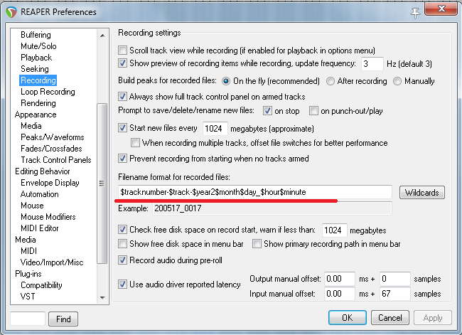 2) И еще вопрос, как сделать так, чтобы при записи, записанный файл в папке проекта , совпадал по имени с наименованием на дорожке в проекте. Например - Канал называется: Ритм -гитара,а файл в папке проекта так же назывался, а не какая-то белиберда.