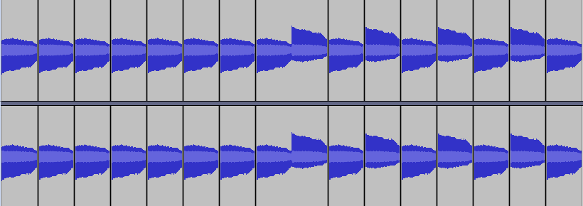 ТОЧНО ТАКИМ ЖЕ ОБРАЗОМ я инвертировал фрагменты ("через одного") в исходном треке. Как видим (а главное - СЛЫШИМ) инвертирование не изменяет форму сигнала (меняется лишь знак) иначе мы бы услышали сторонние призвуки между короткими щелчками стыков. Слушаем "-20 по пикам". Что-то не так? - Да всё так просто некоторым от этого как-то не так...