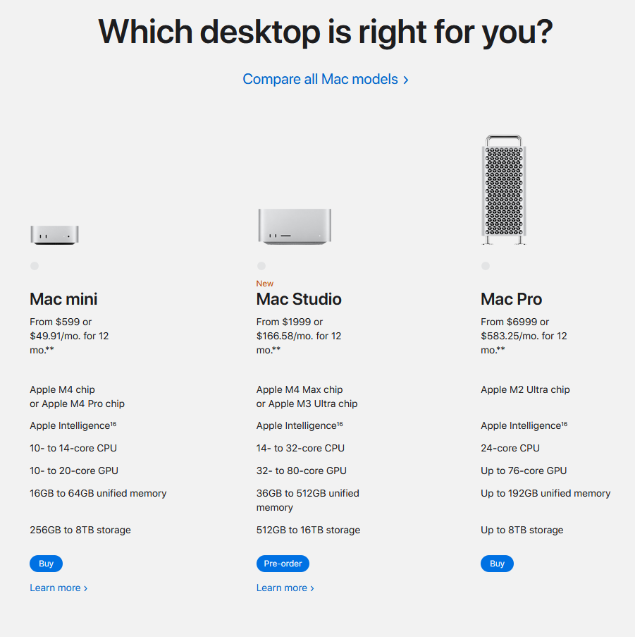 Ну вот в сравнении МакМини, МакСтудио, МакПро... Чем именно макмини не устраивает на их фоне, и что из них вы хотите что бы в них появилось и для чего?