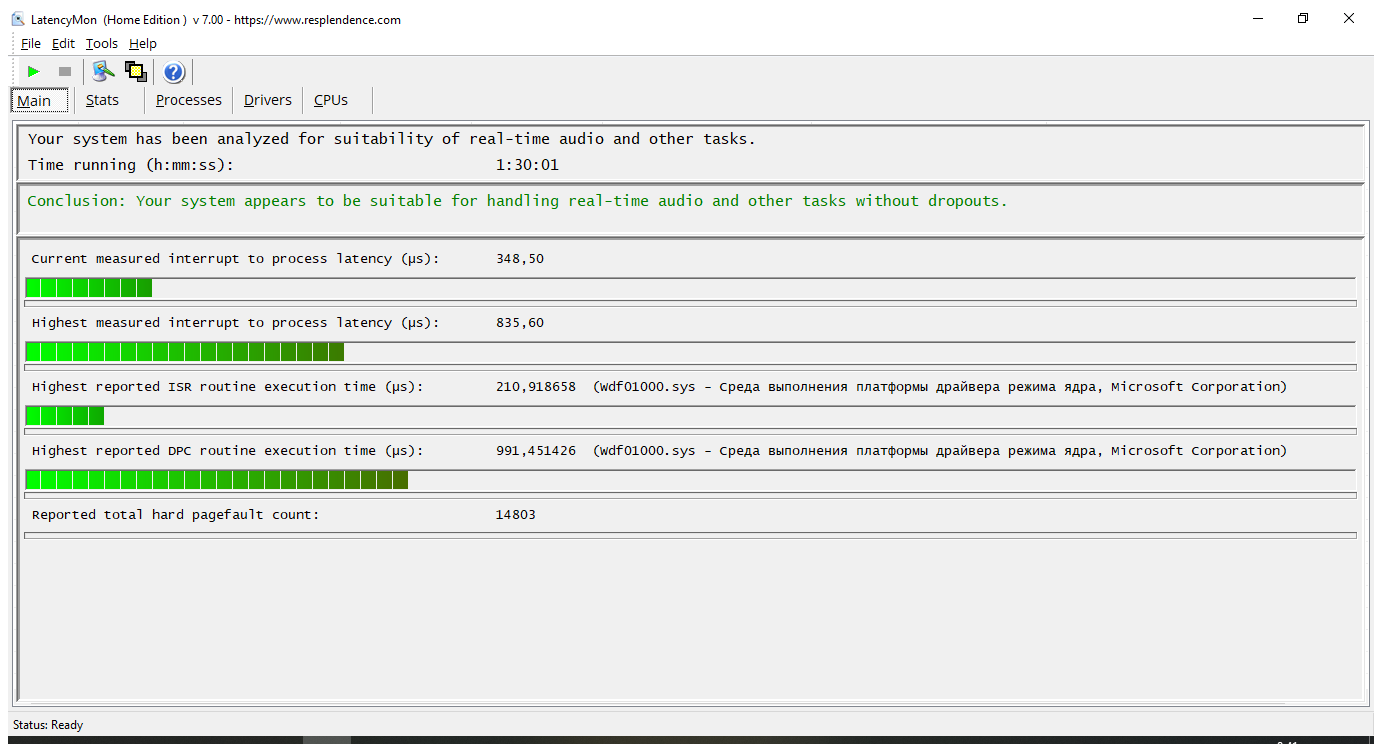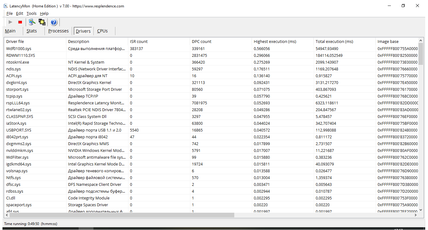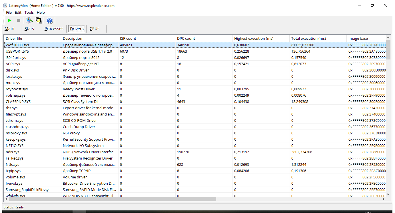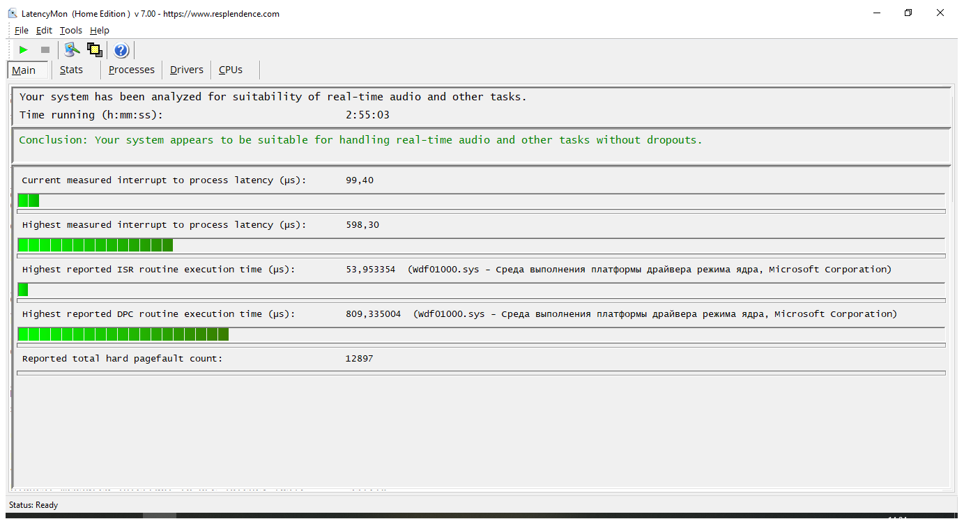 Теперь на первое место по задержкам вышел драйвер аудиокарты.