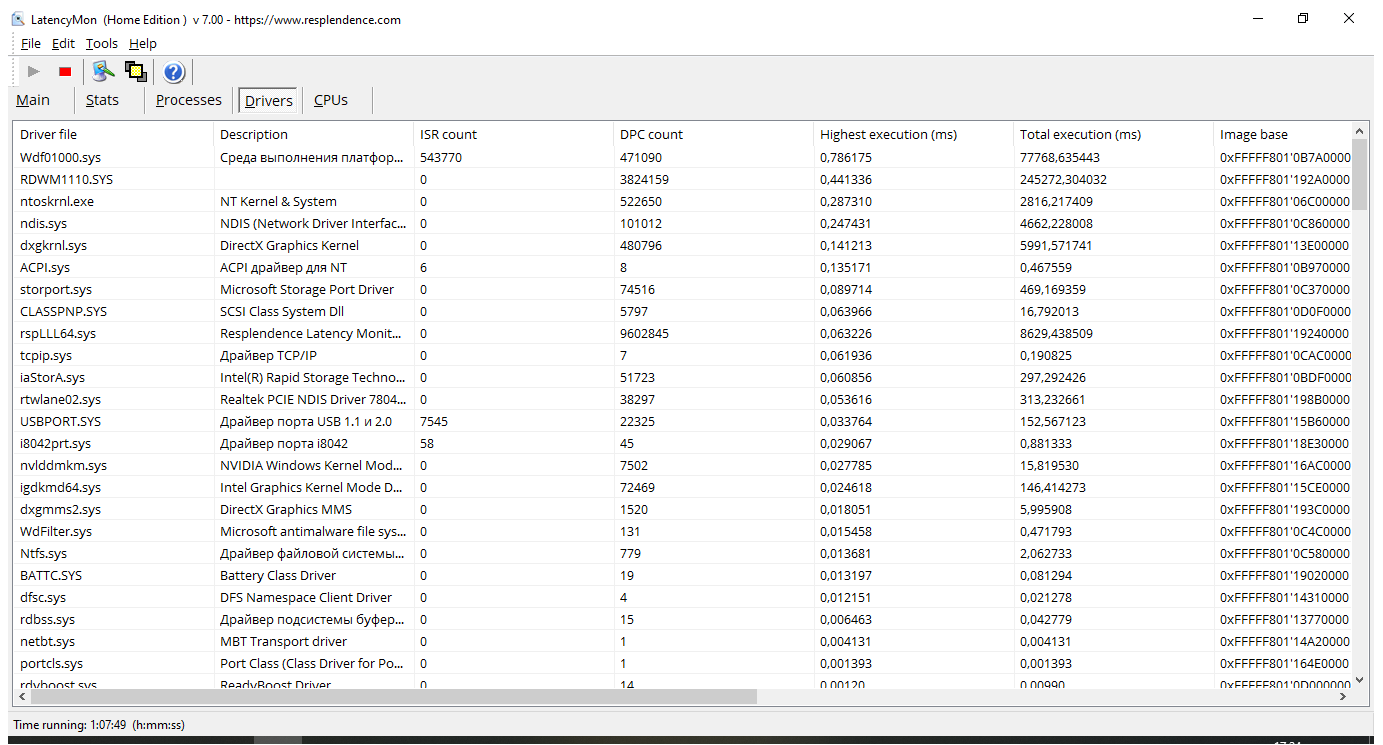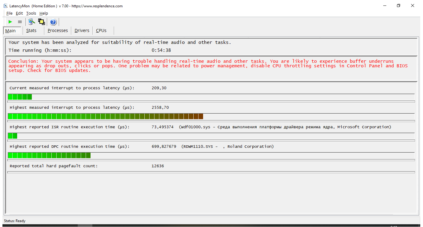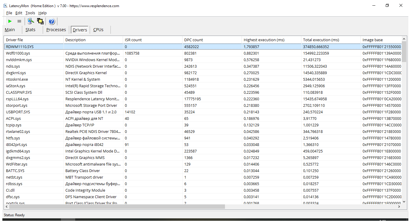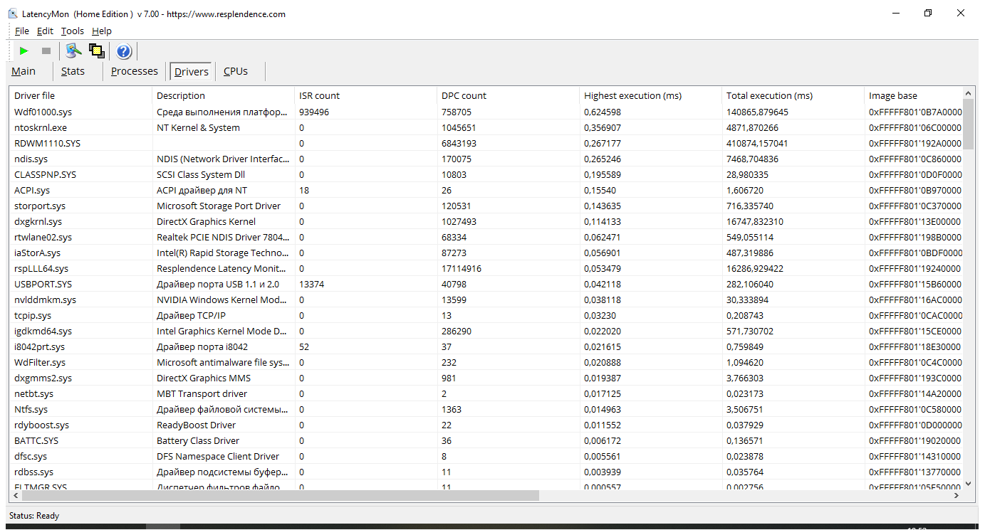 Теперь на первое место по задержкам вышел драйвер аудиокарты.