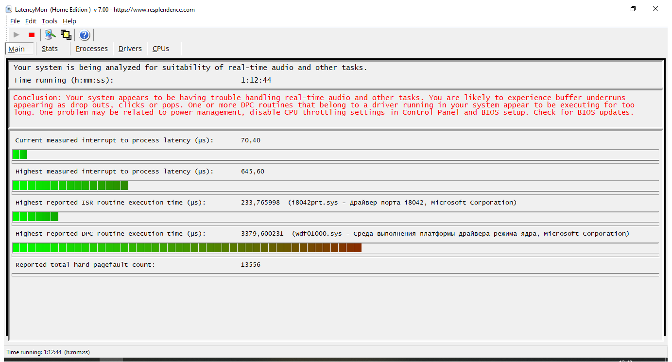 Сюда все выкладывают скриншоты. Я в них пока не очень разбираюсь, это мягко говоря. Но запустить LatencyMon - с этим я справлюсь. Подскажите, всё ли нормально в системе? Скрин после замеров пары минут. Проц i9 7940X без разгона