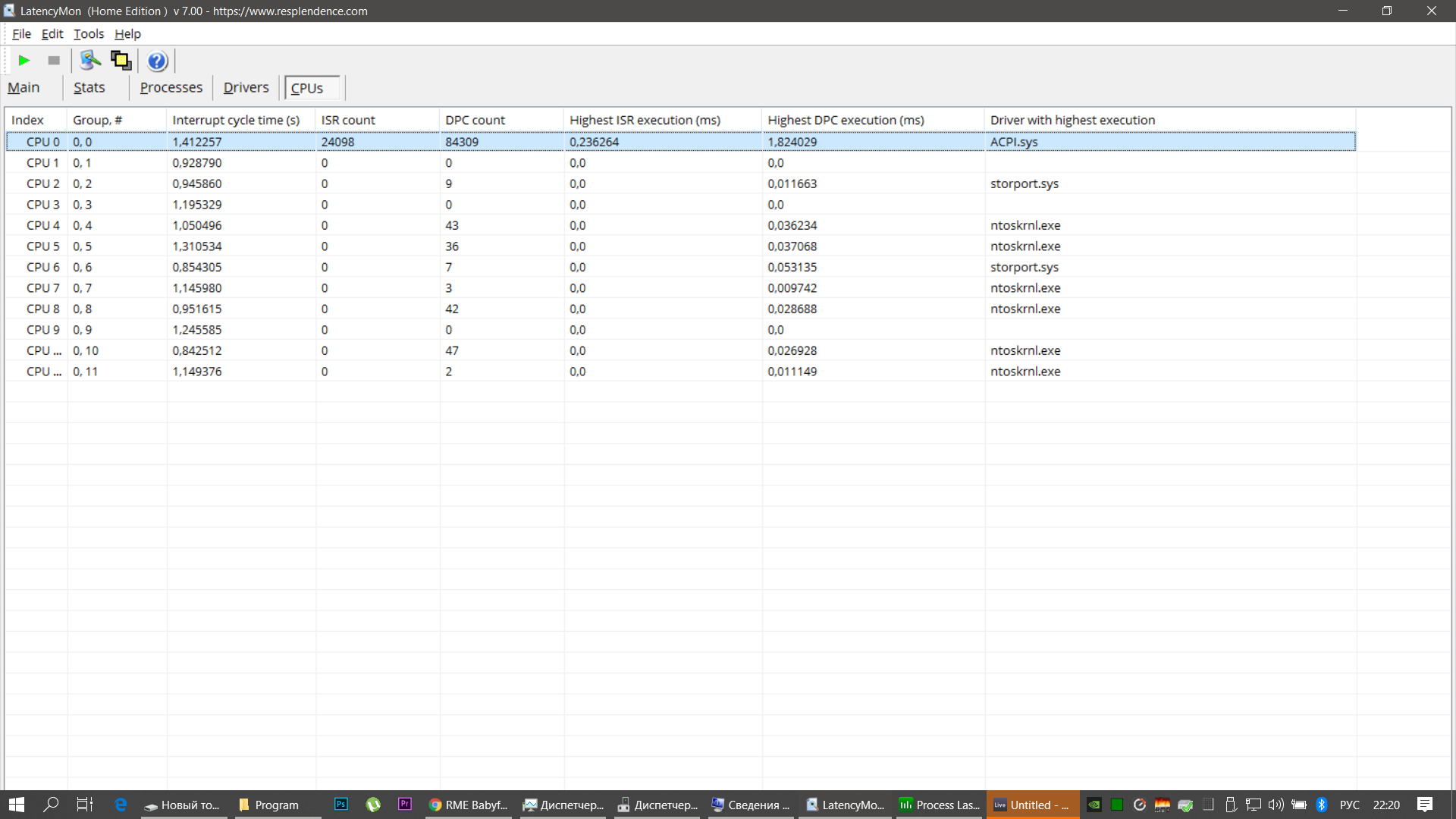 Driver with highest ISR routine execution time: ACPI.sys - ACPI драйвер для NT, Microsoft Corporation