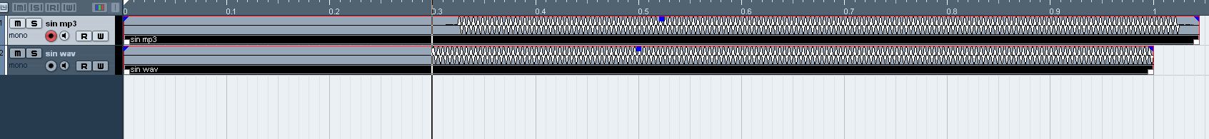 Берете любой свой вав, кодируете в мп3, открываете друг под другом в Рипере - они типа "абсолютно синхроны". А на самом деле - нет, в чём можно убедиться, открыв в любом другом редакторе.