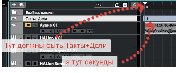 То что на скрине - это ruler track. Шкала, независимая от основной. Его можно удалять, если он не нужен. А все остальное выше вам написали касательно основной шкалы.Короче, помогло другое! После того, как я добавил Трек Шкалу перевел на Такты+Доли !! Но в сетке нет Такты+Доли, там появилась другая шняга мне не понятная: #100 ms (какие то милисекунды)