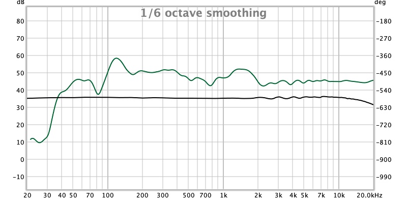 Первая картинка (синяя линя) показывает ачх без стола в комнате, вторая (зеленая) со столом в комнате. Появляется яркий пик на 120 hz и далее несколько подьемов по всей линии ачх.