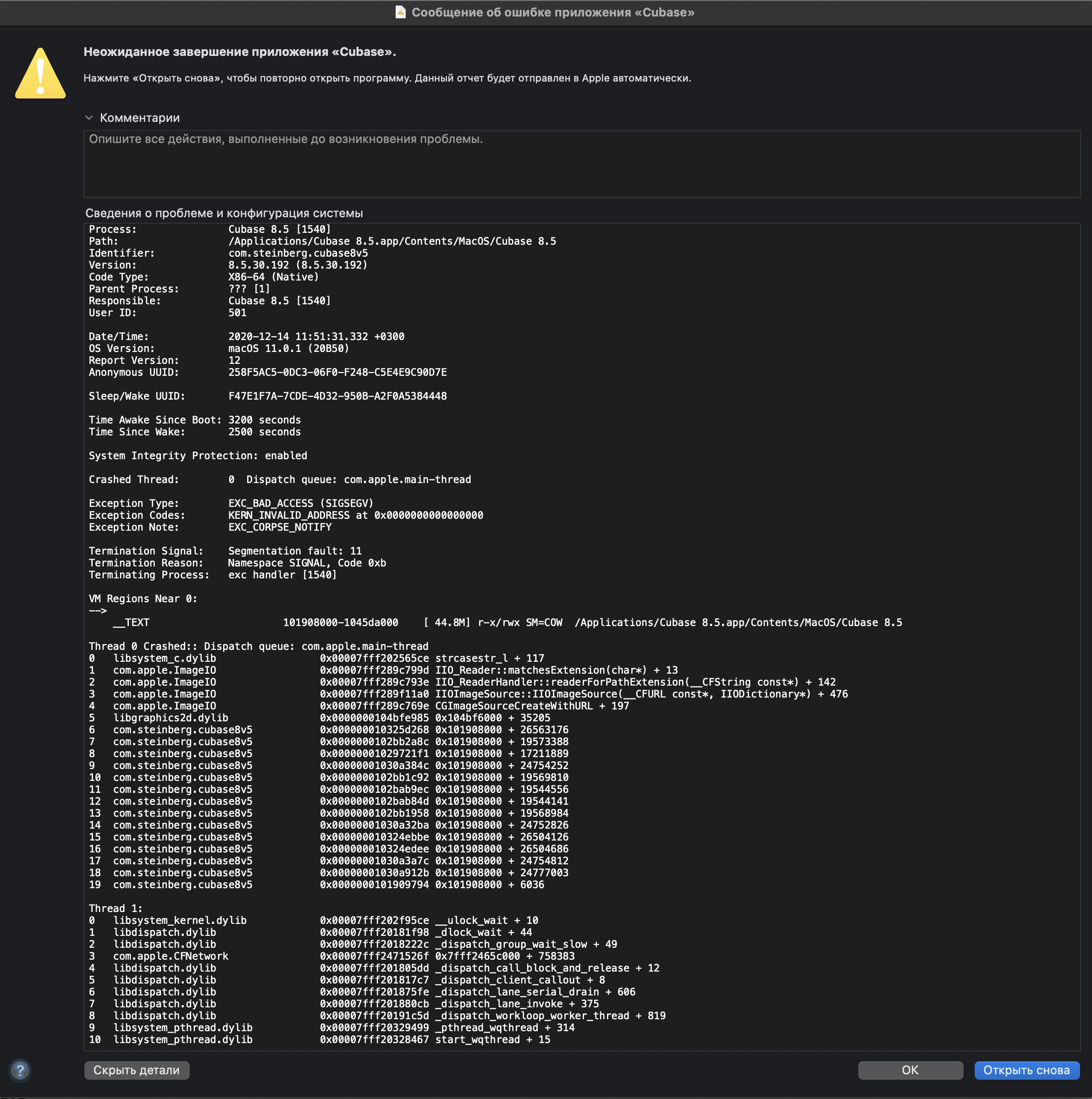 Короче = iMac (Retina 5K, 27-inch, 2017 кубейс 8, 5 про , работал до сего времени хоть и коряво. Лицензии все. Но тут что то может нечаянно (чистил) удалил на макинтоше и теперь при открывании куба появляется таблицы ошибок. И перестанавливал с лиц диска на куб,, и лицензии загружал свежие. Вот картинка при запуске.