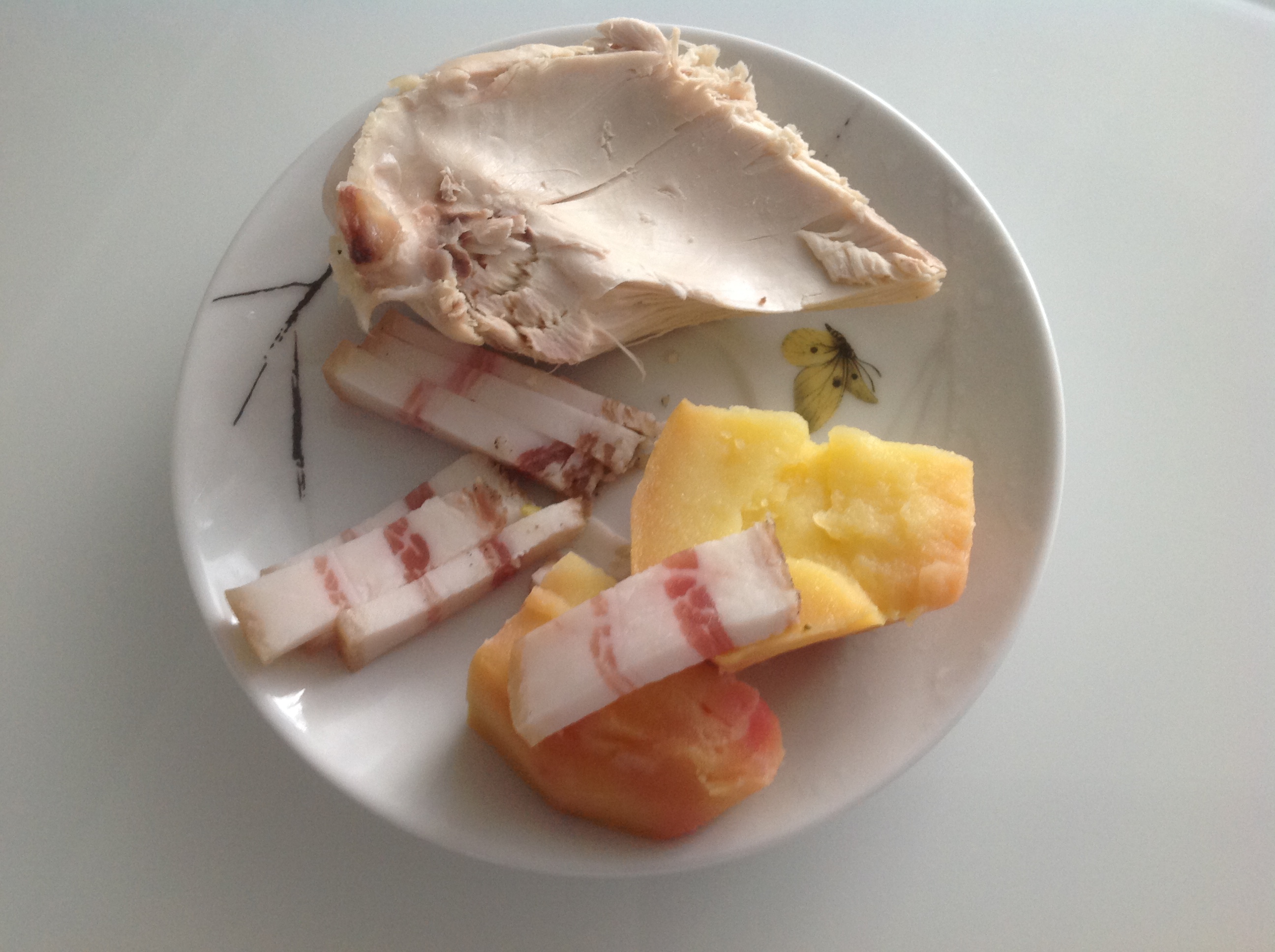 Не бейте, и не в обиду, но увидев сало с прожилками вспомнил, как мне приятель эдак лет 30 назад рассказывал, что люди иногда для получения эффекта бекона не чередуют периодично кормление порося, типа, к примеру зерно и комбикорм, а дубасят порося палками периодично. Дубасят, не дубасят - прожилки. :)