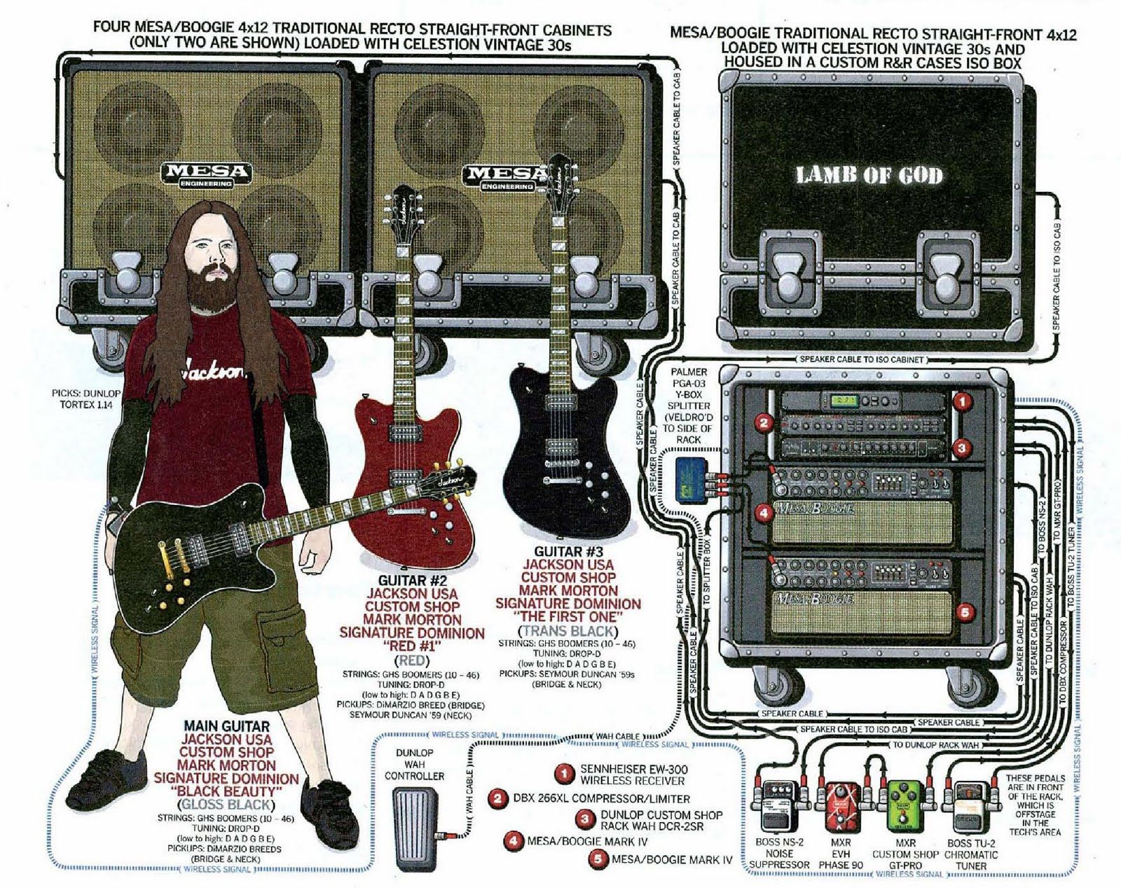 У них было 4 кабинета маршалл с v30 и 8 микрофонов.