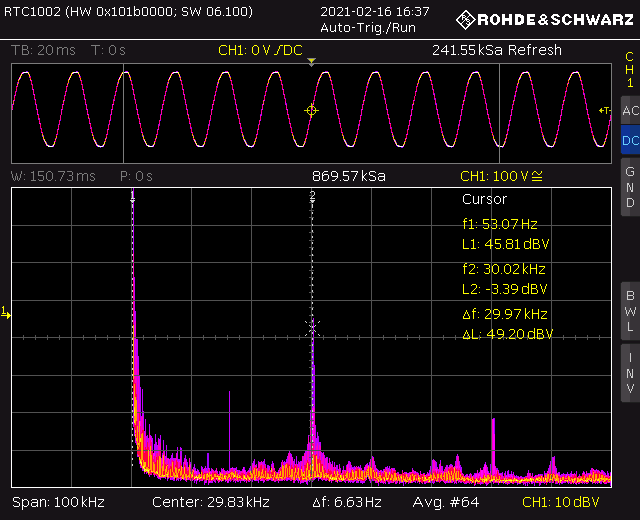 на выходе оказалась куча гармоник по уровню -34 или -38 дБ от Uном (если я уже правильно помню). Дело было года 3 назад.
