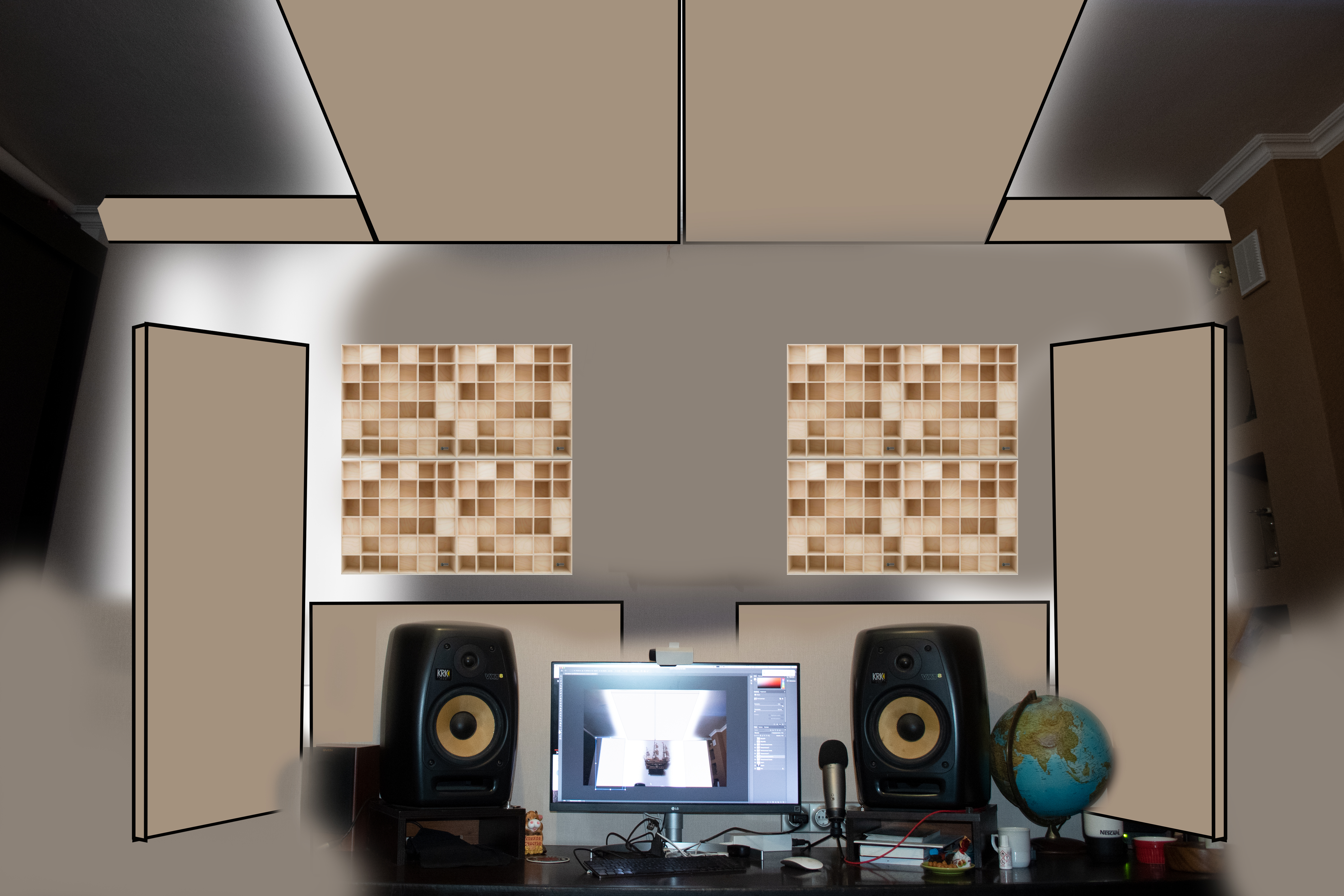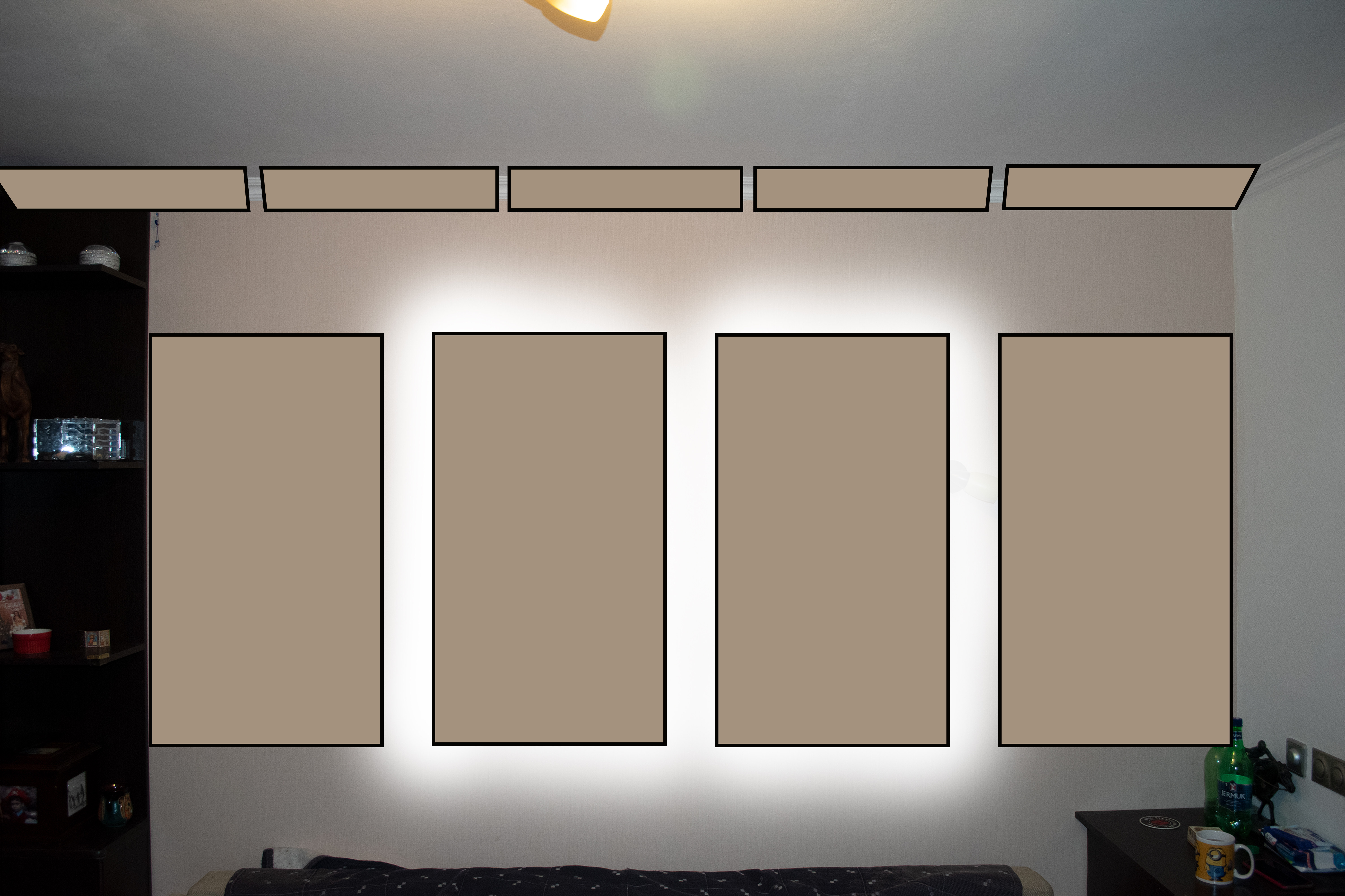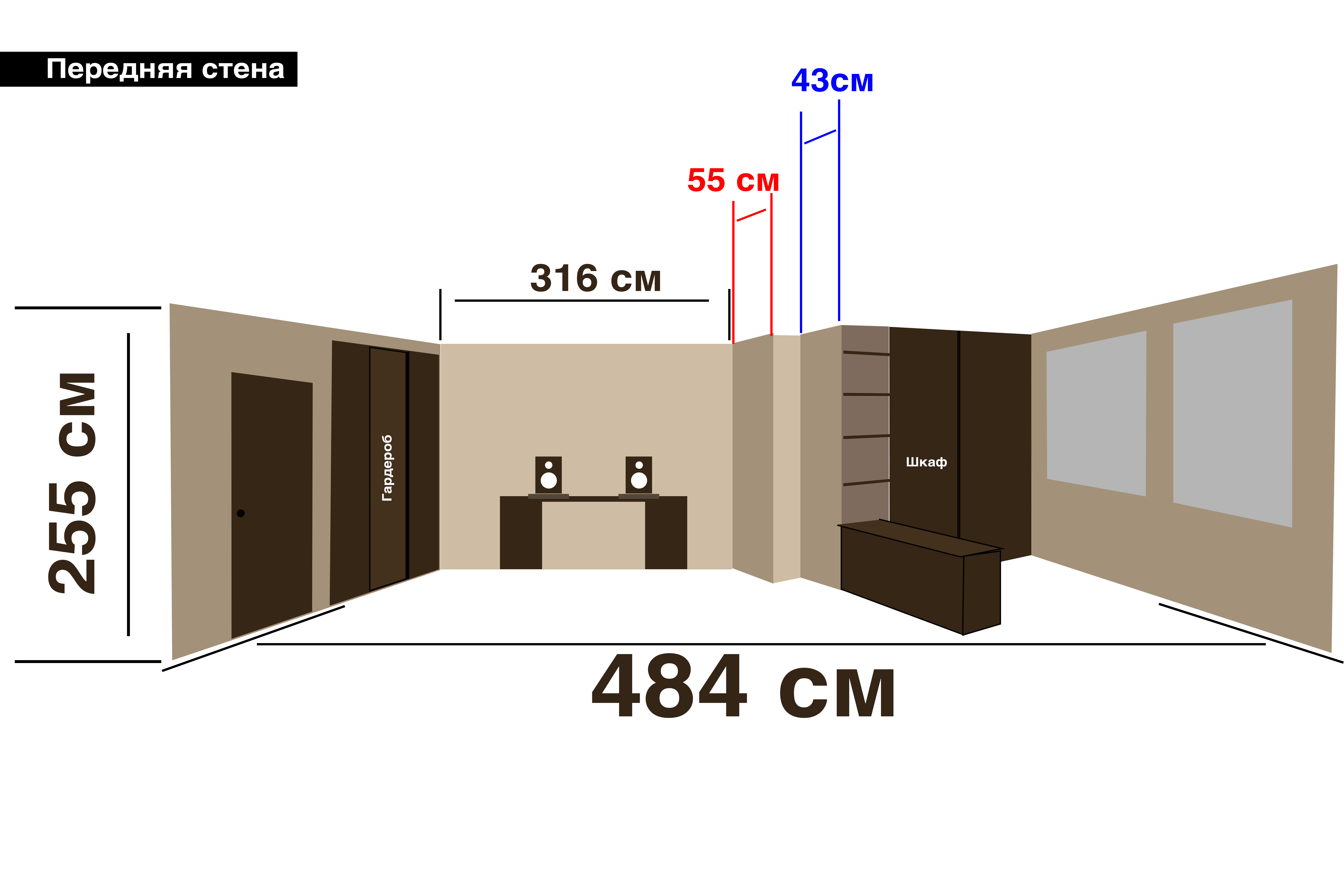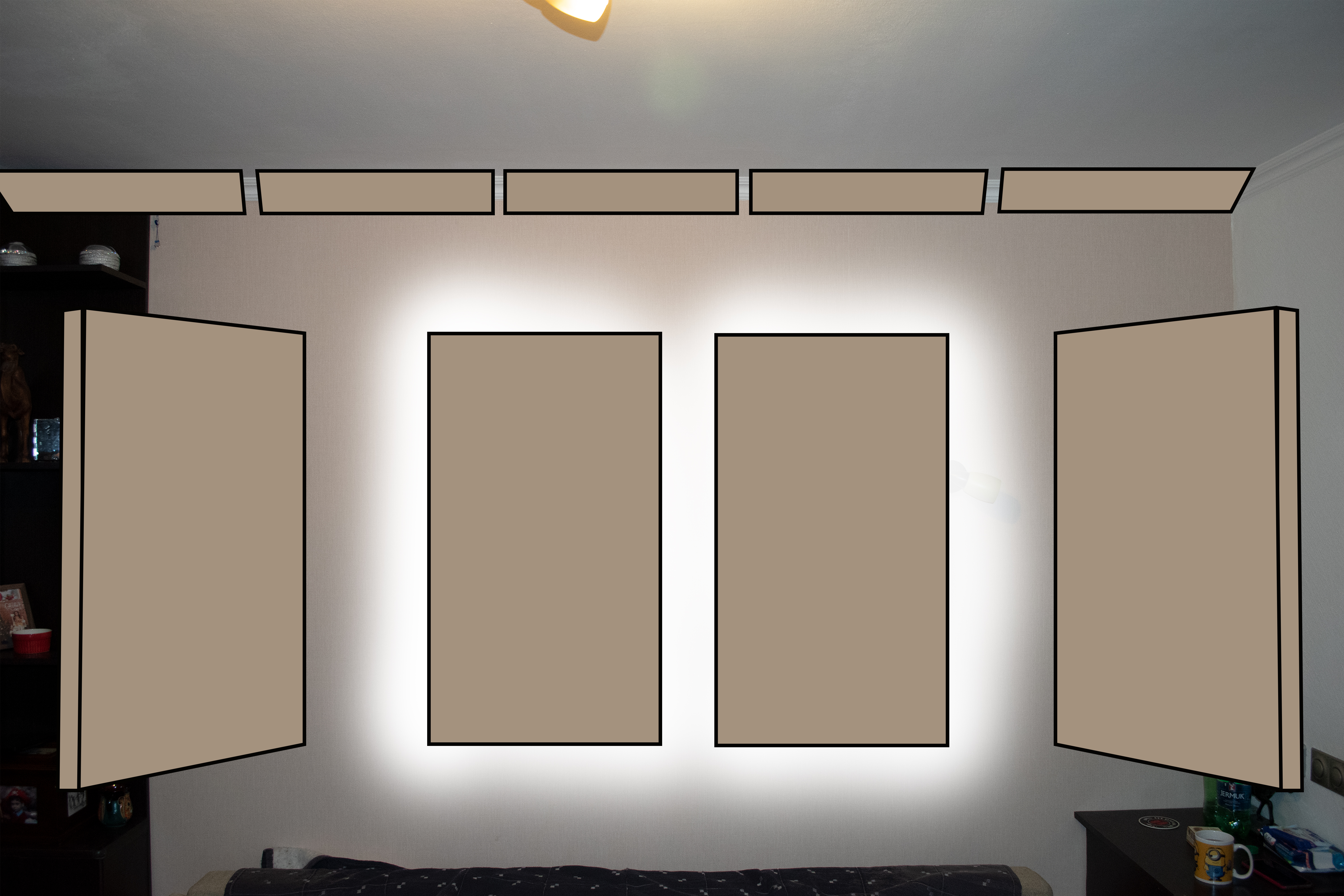 Боковые панели хочу закрепить на каком-нибудь механизме или петли, чтобы при необходимости можно было отодвинуть от стены и прикрыть угол (их же и хочу сделать диафрагмическими или НЧКП для подавления хоть какой-то НЧ )