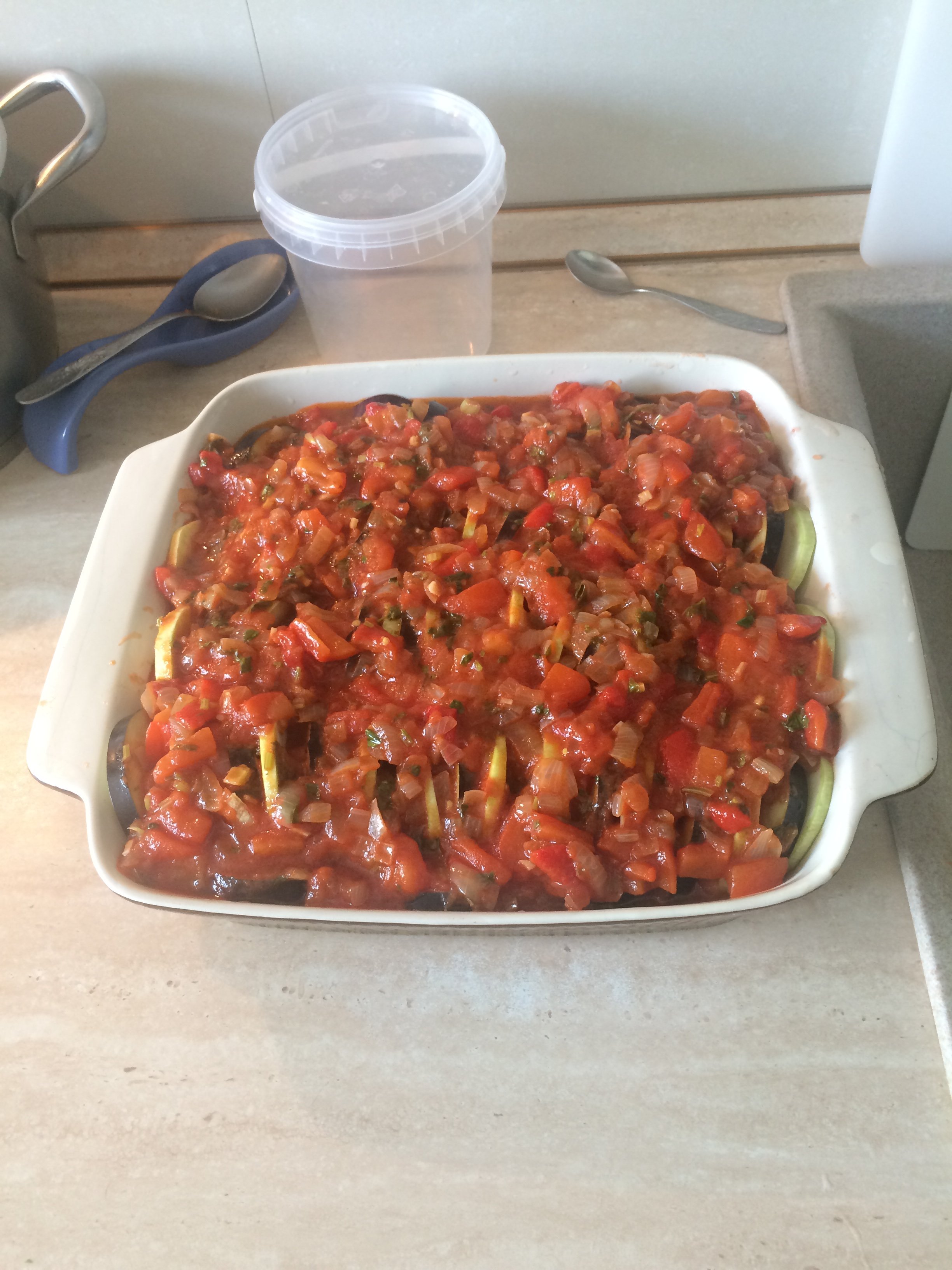 Сегодня готовил рататуй , так соус базовый , который кладётся снизу и сверху , тоже с кинзой , потом все это ставишь в духовку на час , есть можно и горячим и холодным .