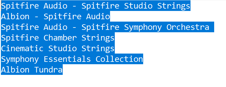 Доброго времени суток. Прошу не ругать сильно,начинающего) Начал учиться писать оркестровую музыку,и для начала хотел снять трек в ноль,чтоб узнать что( там и как? )в целом.Хотел попробовать снять два трека,но в своих библиотеках не нашел похожие артикуляции,или плохо искал,прошу еще раз простить новичка,это первые мои шаги.Подскажите, с какими библиотеками под контакт,можно снять эти треки?Приложу скрин моих библиотек,которые у меня есть.Заранее спасибо,за совет.