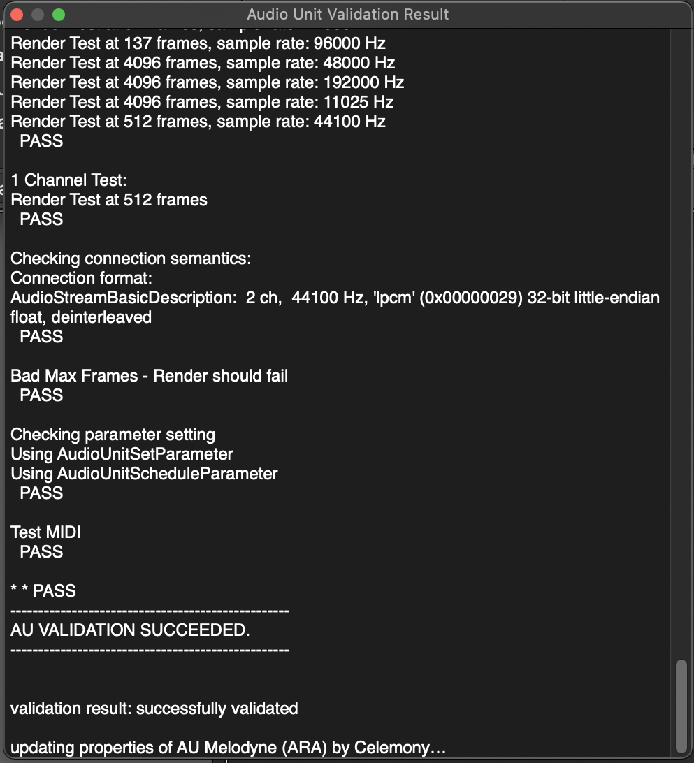 Проблема касается любого плагина: если с первого раза, при запуске Лоджика после установки, плагин не проходит проверку, то в Менеджере Плагинов невозможно его сбросить (Reset and Rescan Selection не работает), потому что происходит бесконечное updating properties of AU... (см. скрин).