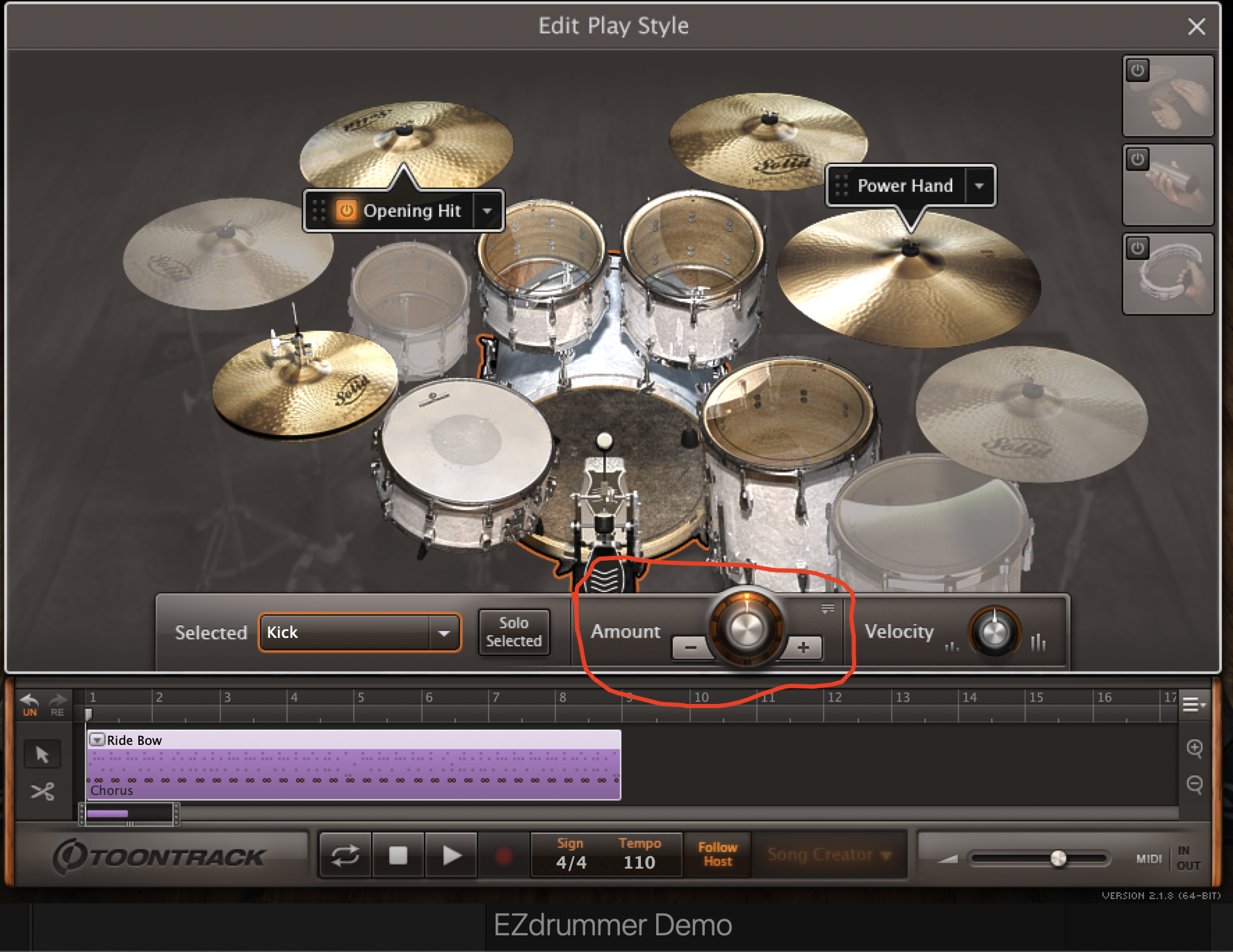 В промо хвалили умного "барабанщика", который добавляет новые удары наилучшим образом (регулятор Amount для выбранного элемента установки). Типа, чем у вас больше мидишек в запасе лежит , тем лучше Ez это анализирует и добавляет/отнимает удары.