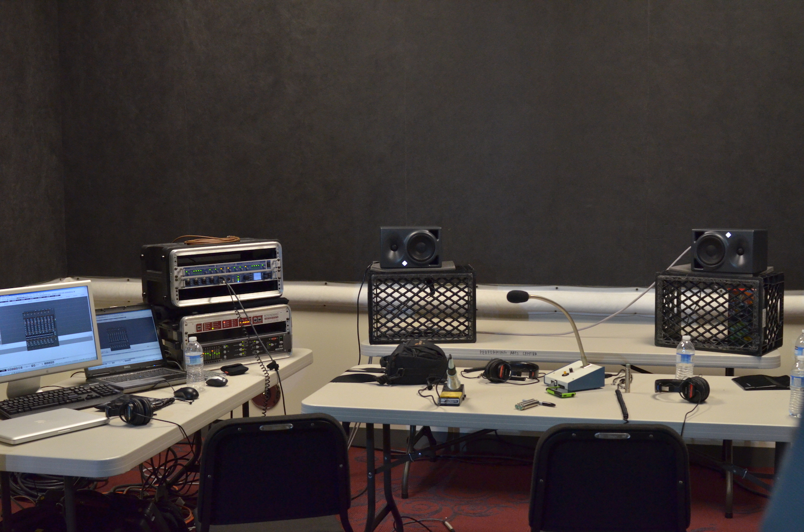 Потому что в концертных залах до недавнего времени и на открытых площадках редко предусматривались помещения для полноценной записи. Да и серия моих фото как раз призвана показать "нечеловеческие условия", в которых приходится работать. Это же в основном всё выездные записи. Приехал, записал мультитрек с выстроенным миксом, при необходимости подкорректировал его позже и всё. Да и это ещё прилично. Часто вообще просто сразу за кулисами поставим стол и записываем, ещё и пытаясь услышать хоть что-то в наушниках.что ж Вас в такие закутки все загоняют?