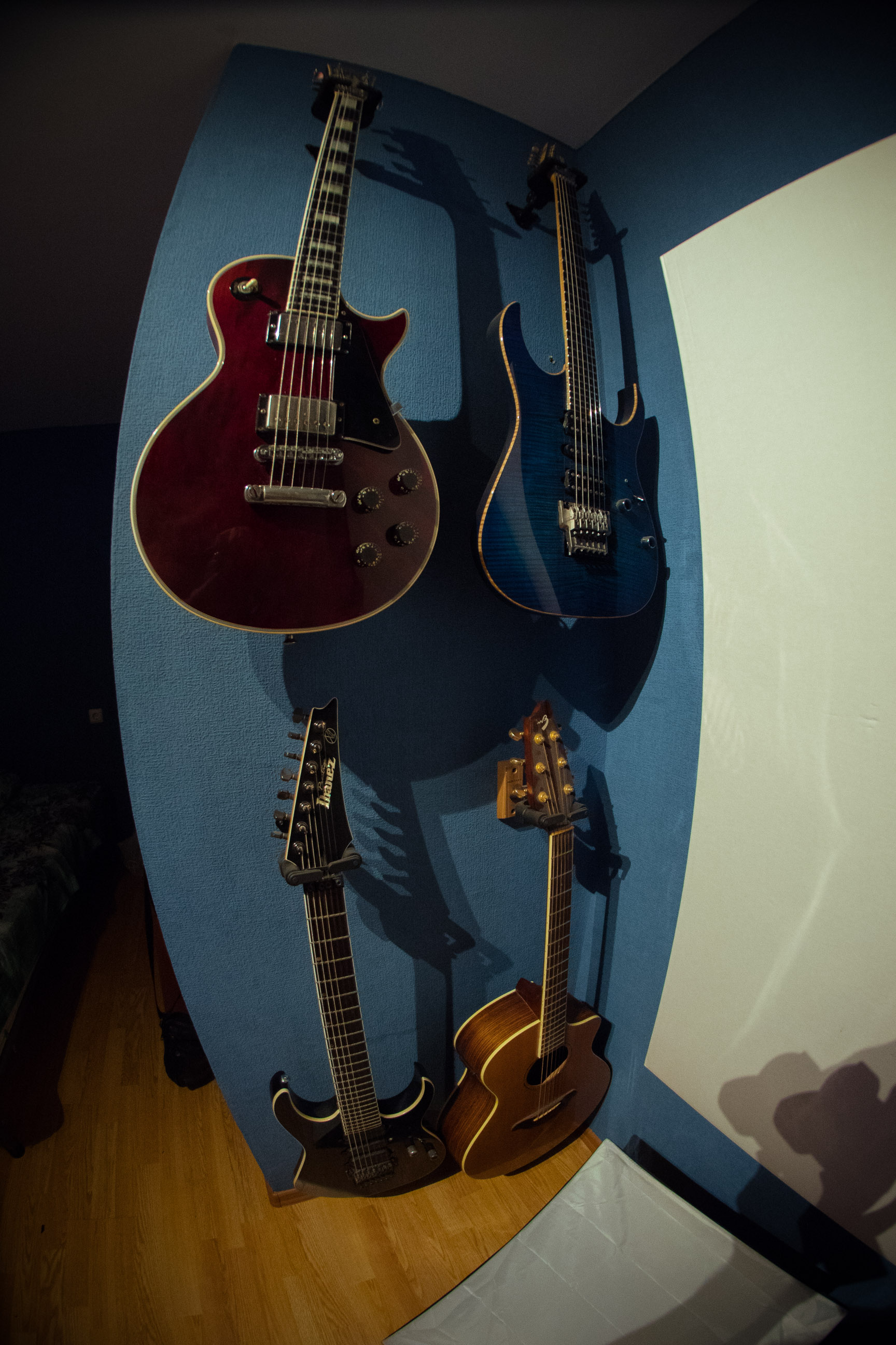 Мой музыкальный уголок...гитара в кадр не попала..только ремень,клавиатура тоже запрятана,комбик и гитарный процессор внизу стола))Какой то он в кадре и не музыкальный совсем)