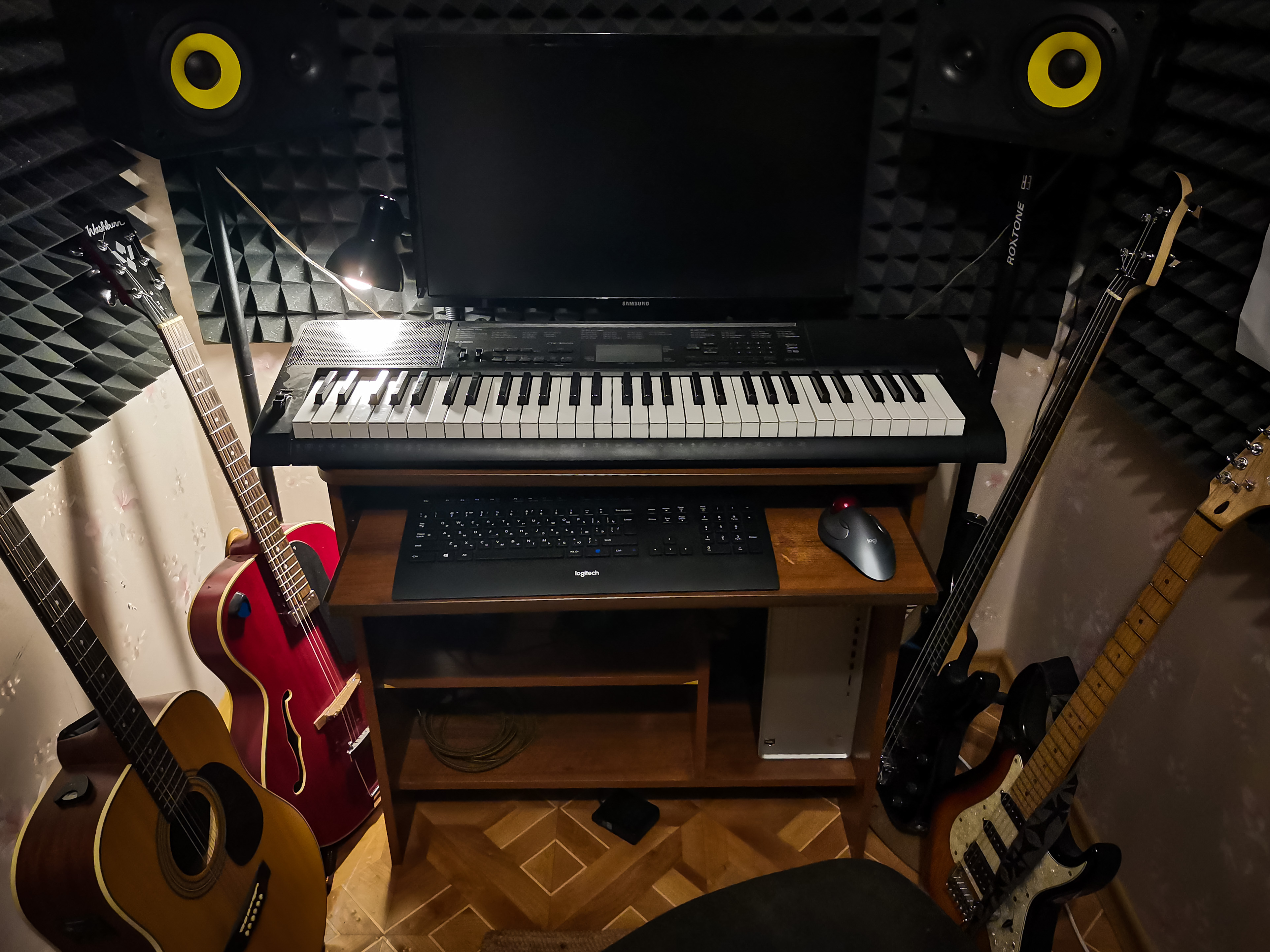 Мультимедийные колоночки от немецких товарищей. Типа вот таких - https://thonet-vander.com/global/product/kurbis-bt/ только без блюпупа, постарше версия. Взял их в днсе за пять тысяч за пару, лет семь назад, хотел чисто кинуть на кухне музыку слушать. Но они меня настолько порадовали, что в итоге на них и занимаюсь творчеством. Конечно, на Tannoy Gold 7 я посматриваю, но как-то так лениво, пока эти не умрут, наверное, и дёргаться не буду.
